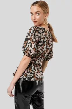 NA-KD Printed Long Sleeve Chiffon Blouse