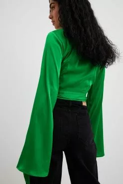 NA-KD Trumpet Sleeve Wrap Front Satin Blouse