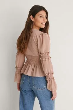 NA-KD V-neck Smocked Blouse