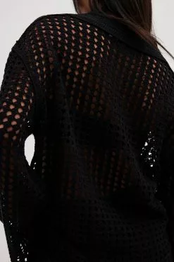 NA-KD Crochet Knitted V-Neck Sweater
