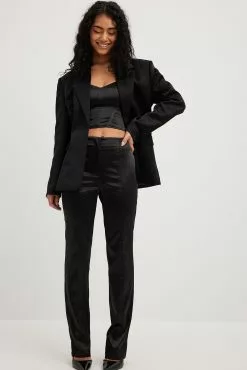 Carla Ginola X NA-KD High Waisted Satin Trousers