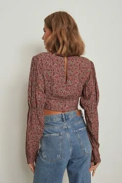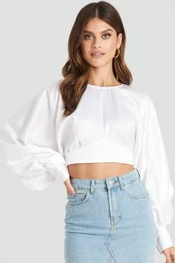 NA-KD Party Balloon Sleeve Open Back Blouse