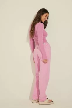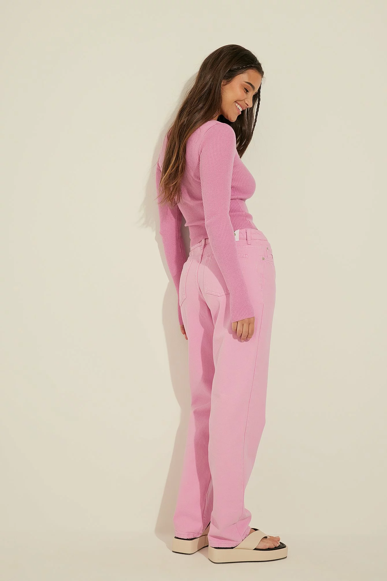 These 5-pocket jeans feature a mid waist. They have straight legs and a zip and button closure.