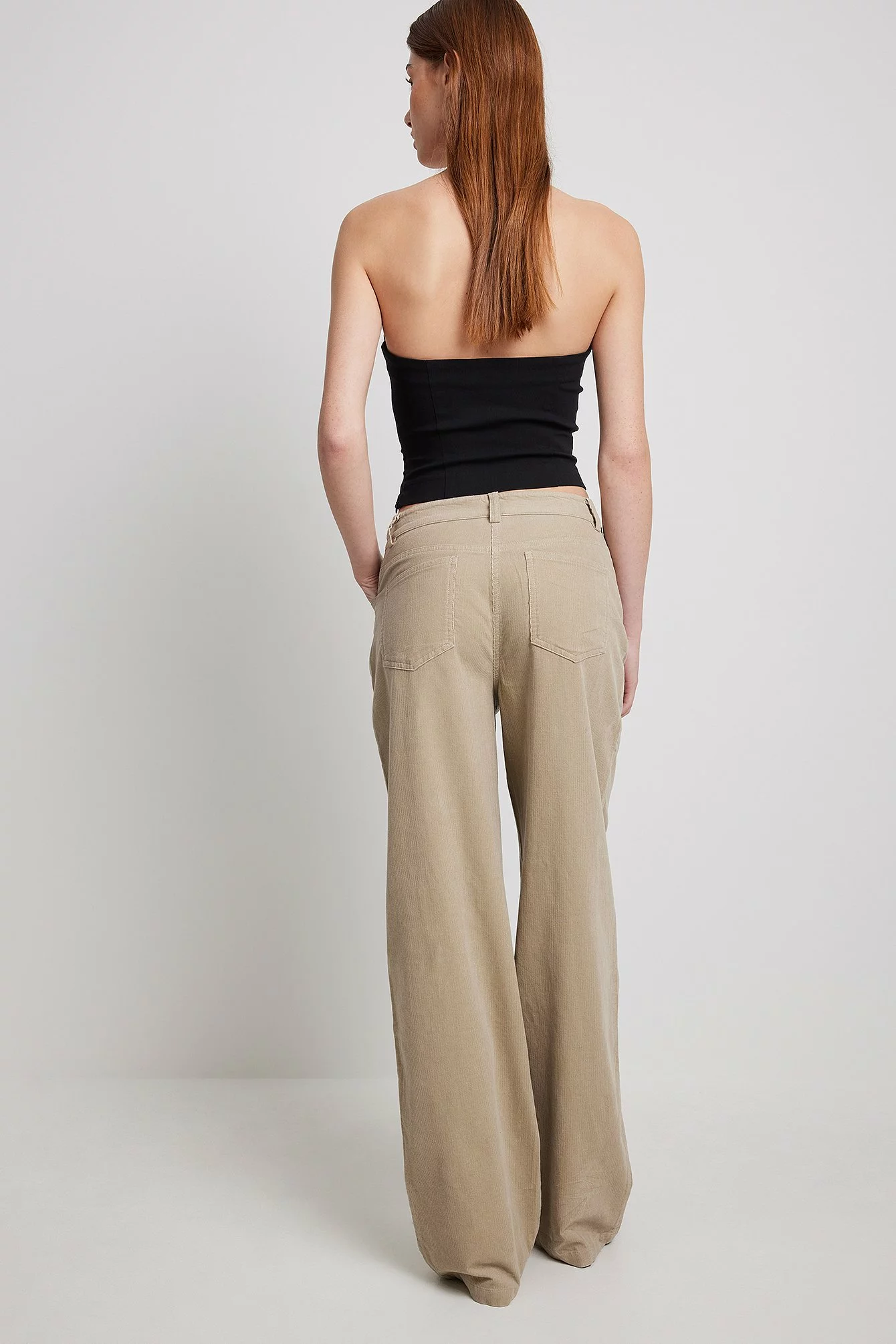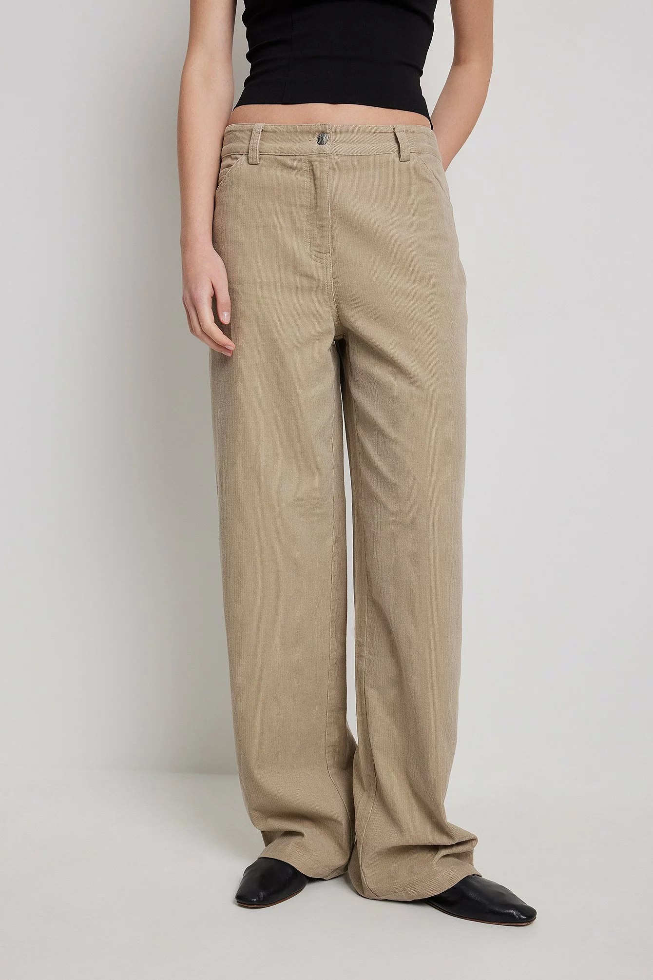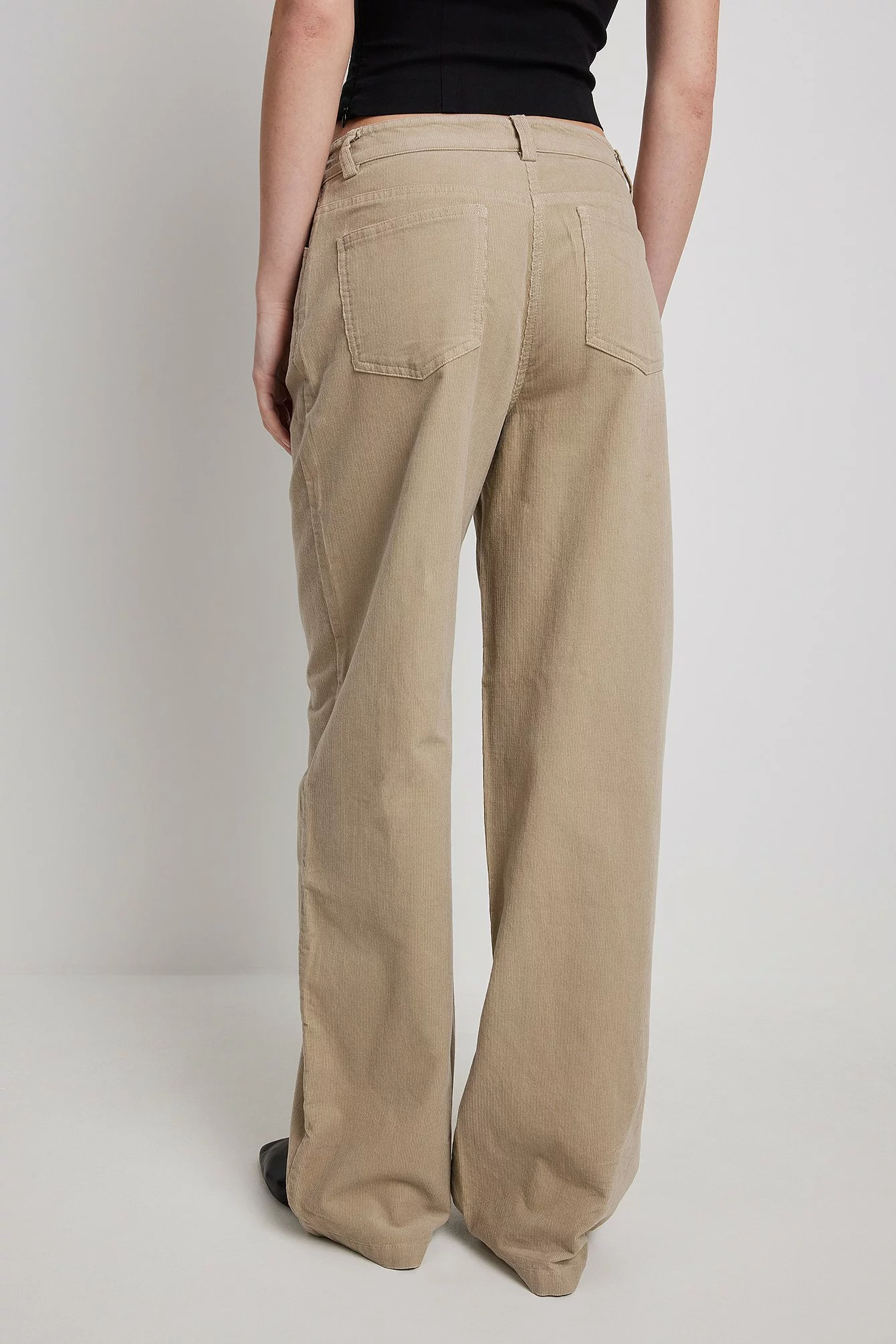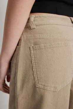 These trousers are made of corduroy and feature a wide leg and a five-pocket design.