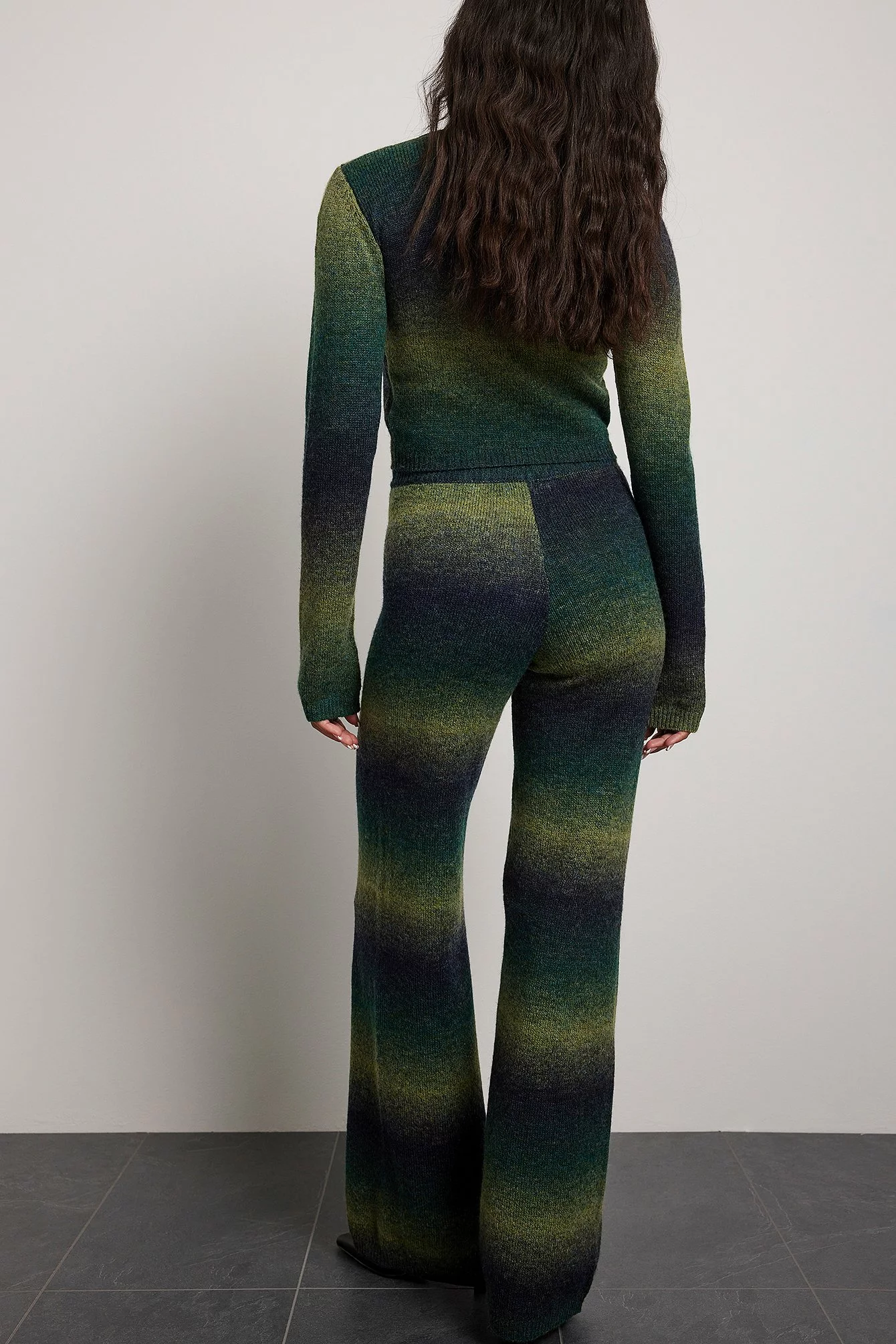 These trousers are knitted and patterned and feature an elasticized waist, a high waist and a straight leg.