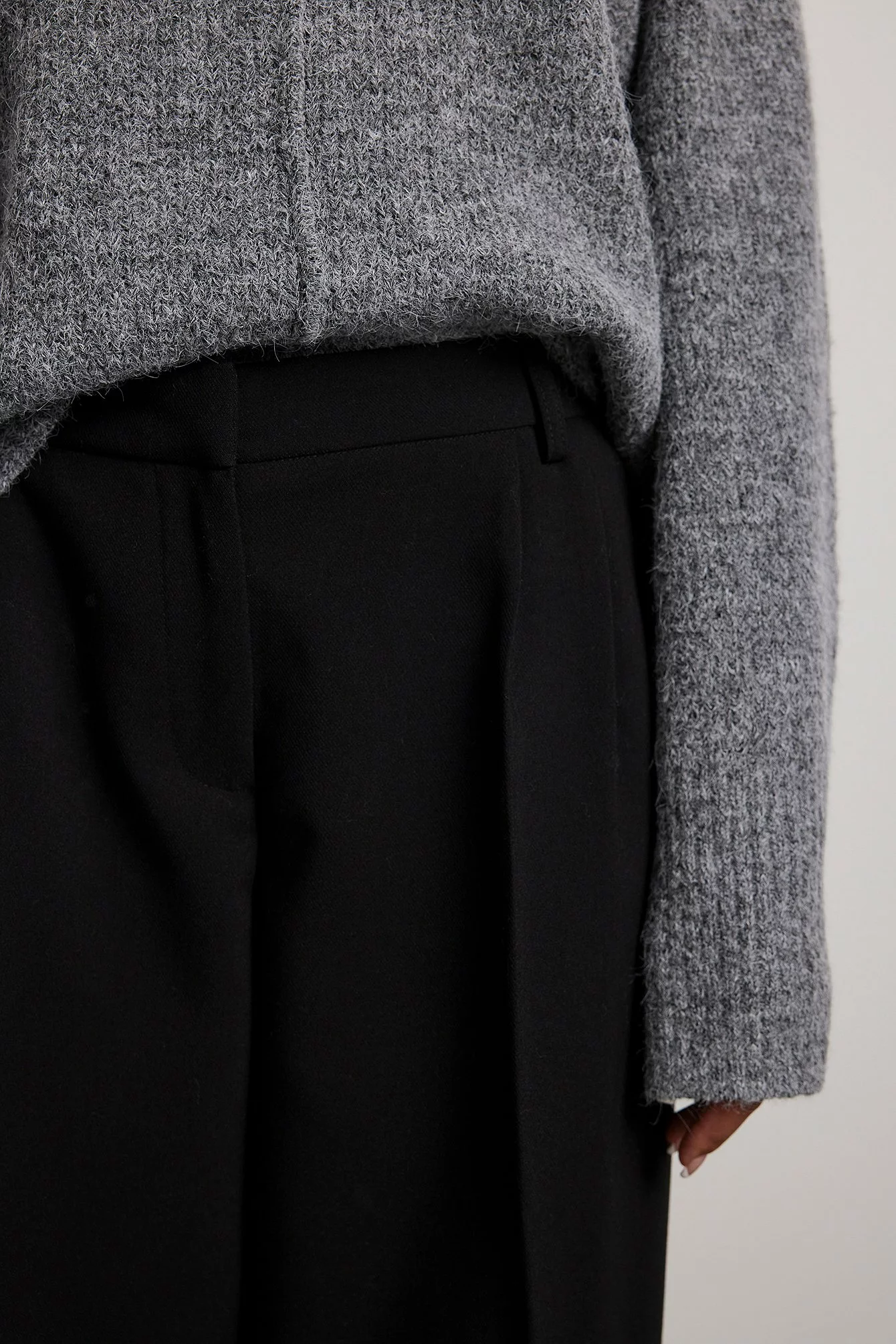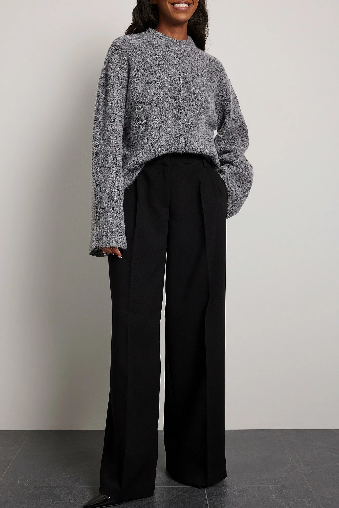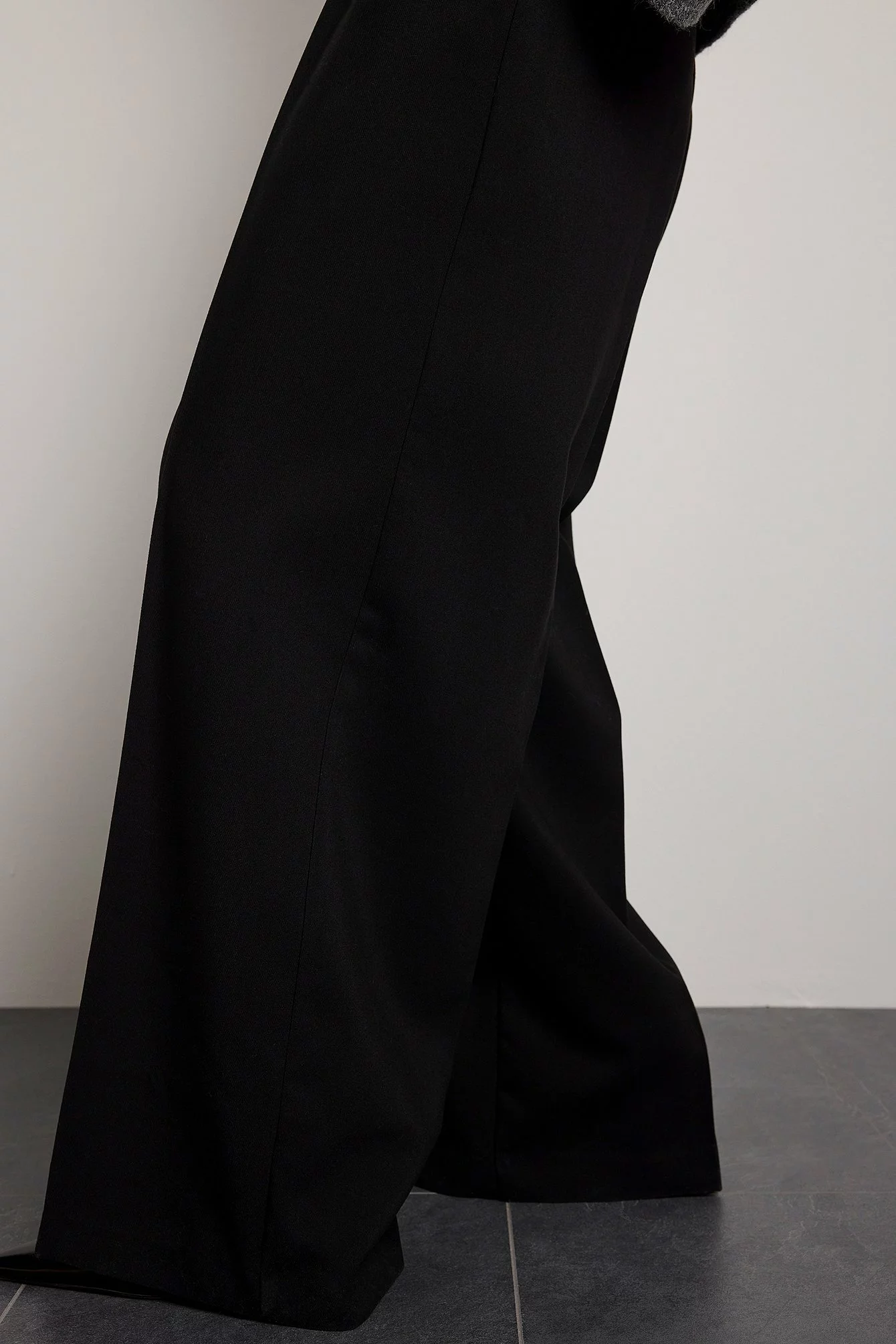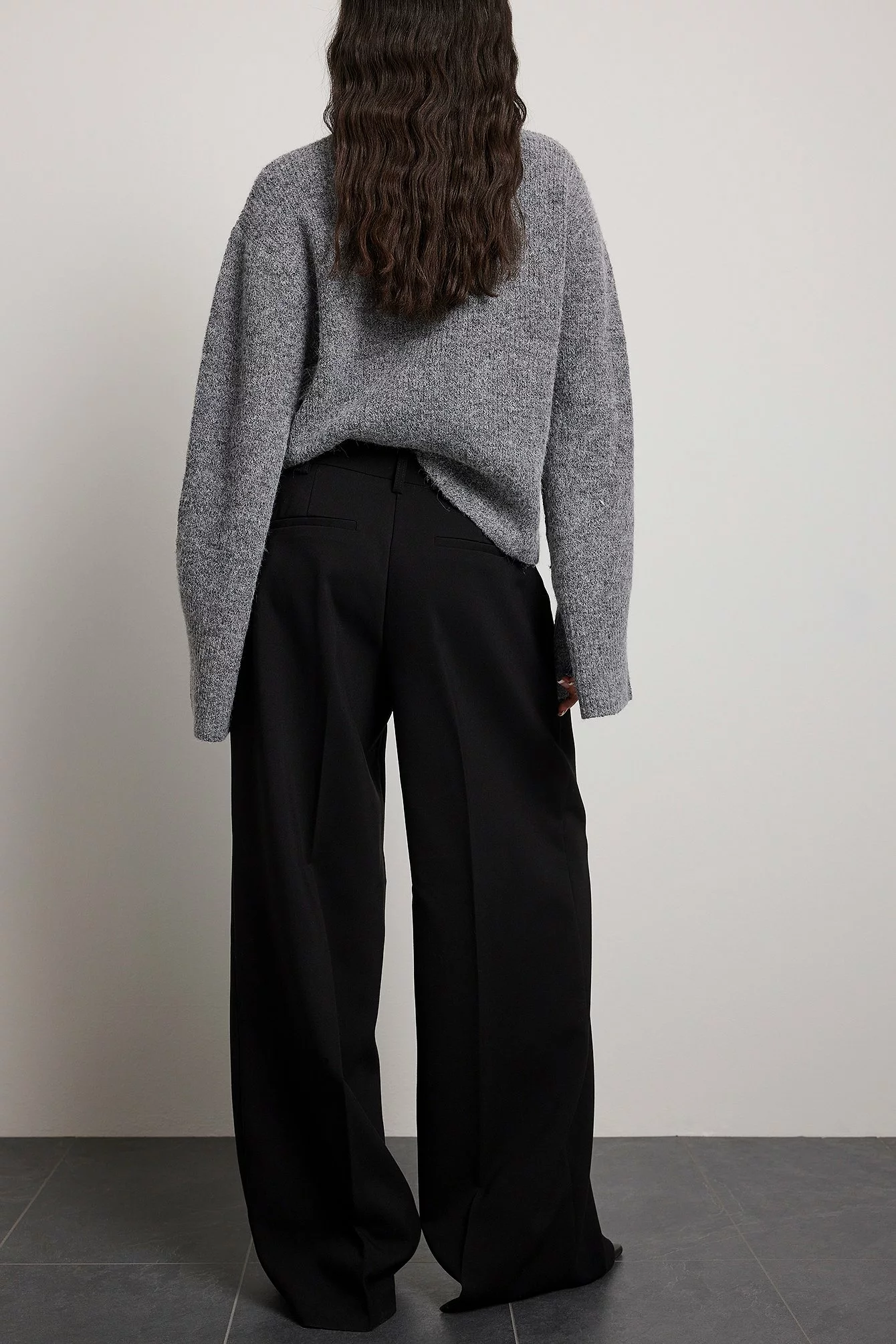 These suit pants are tailored and feature a high waist, a wide leg and side pockets.