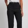 These suit pants feature a button and hook closure with a zipper, a mid rise fit and a straight leg.