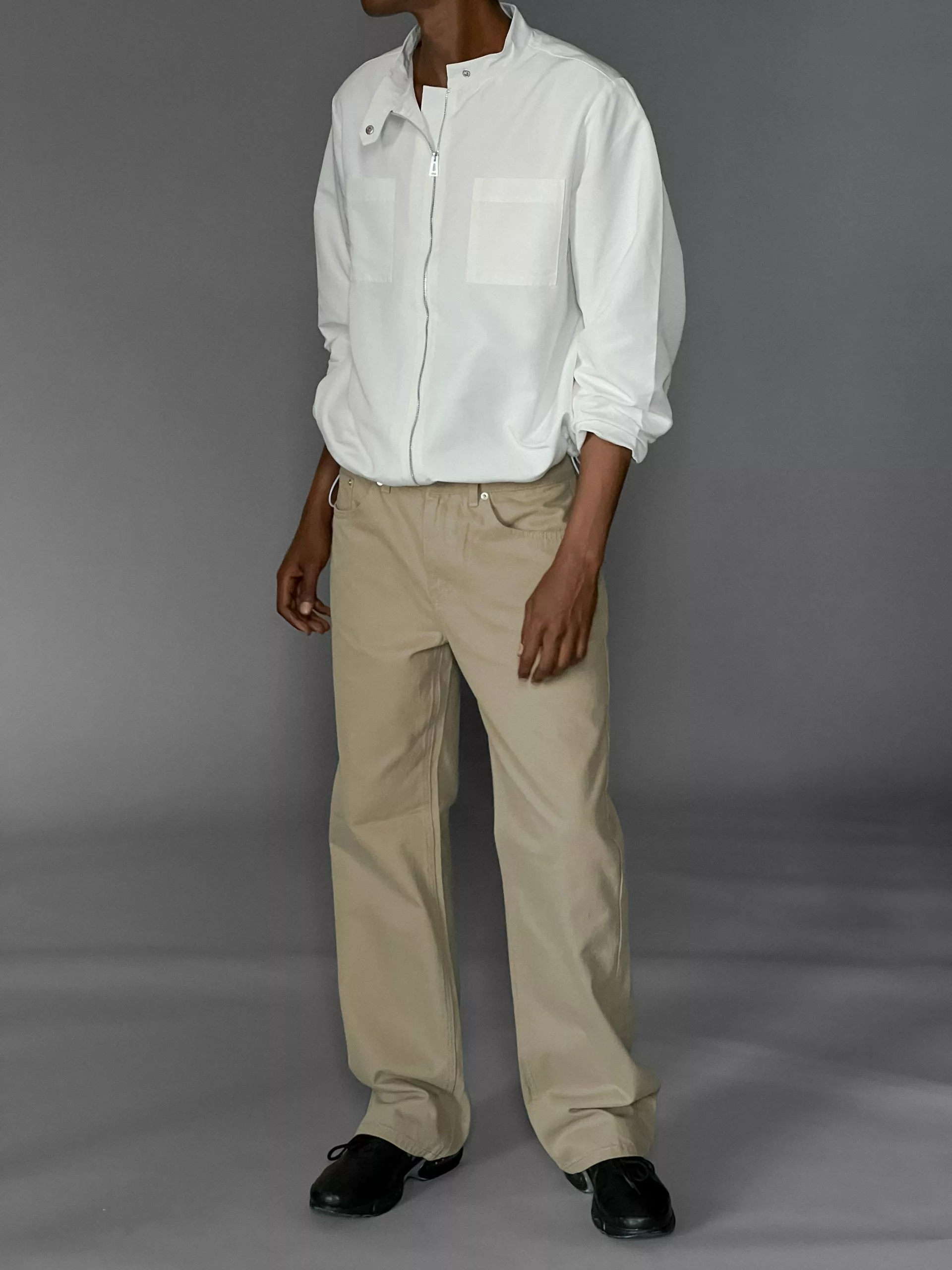 Shell: 55% Organic cotton, 45% Cotton. Pocket lining: 80% Polyester, 20% Cotton.