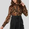 This shirt is fitted and features a collar, a v neckline, long sleeves, a button closure and a stretchy material in jersey.