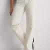 These 5-pocket jeans feature a low waist, a removable belt with a buckle, flared legs and a stretchy material. The color of this product may transfer to itself or other objects. Avoid making contact with light-colored surfaces.