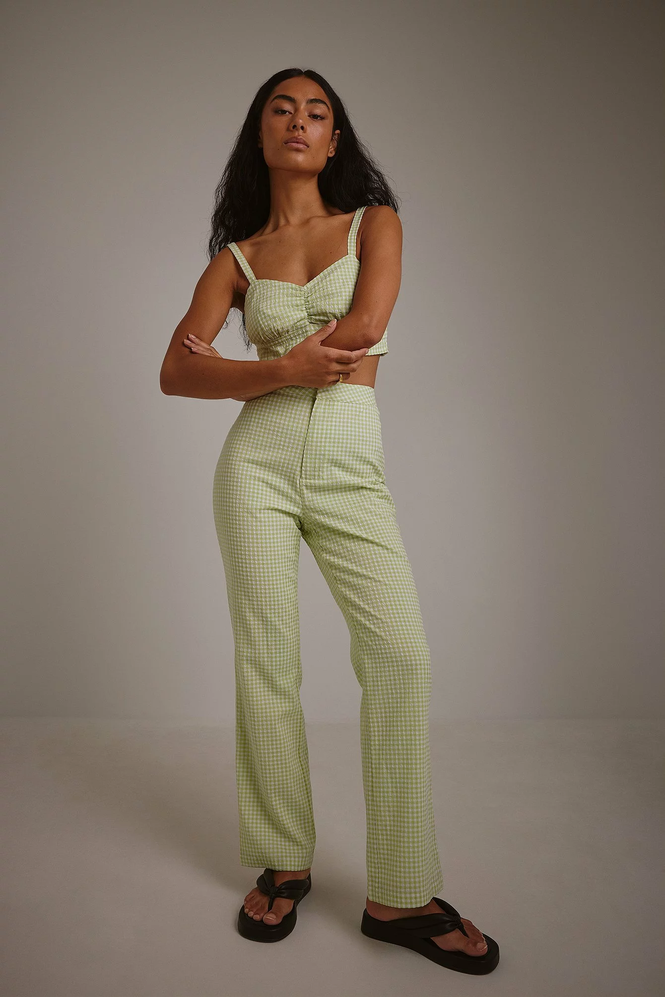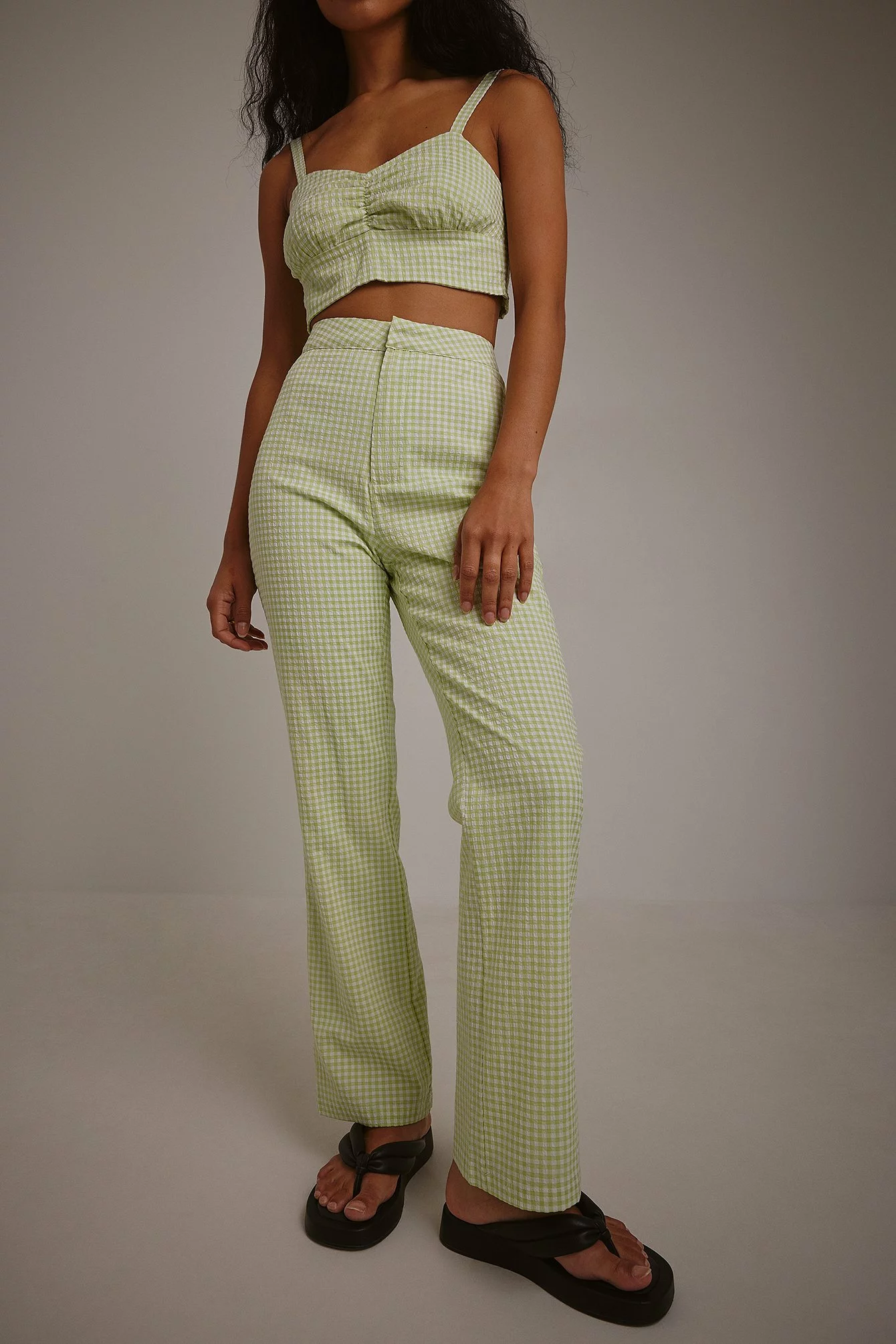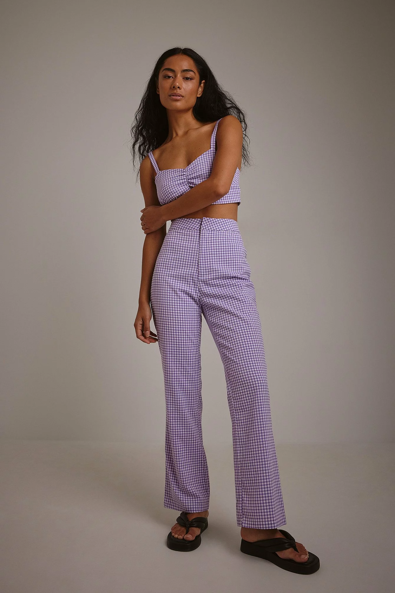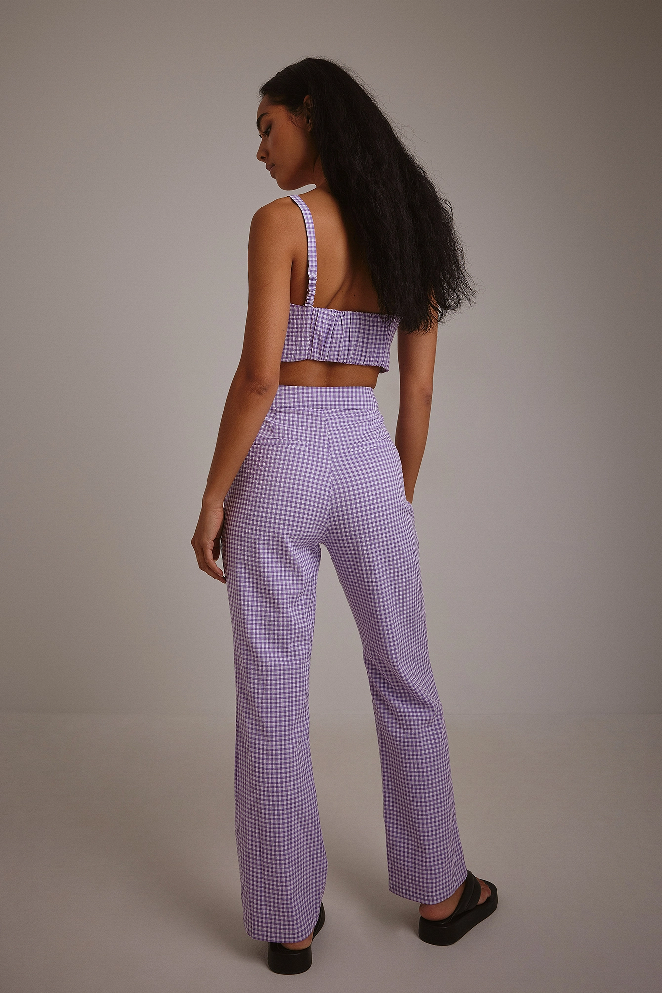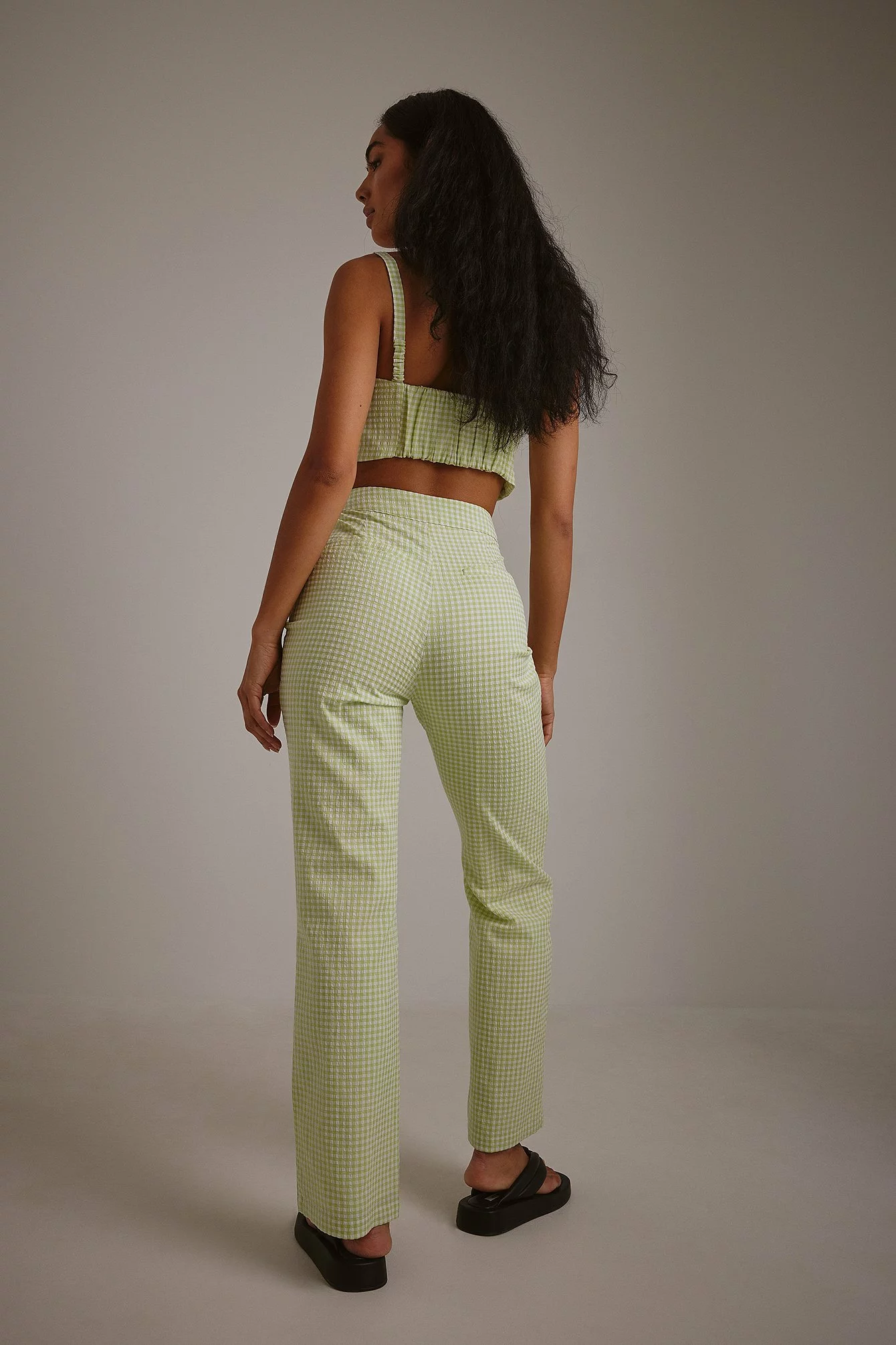 These trousers feature a printed design, a zipper and hook closure and a straight leg.