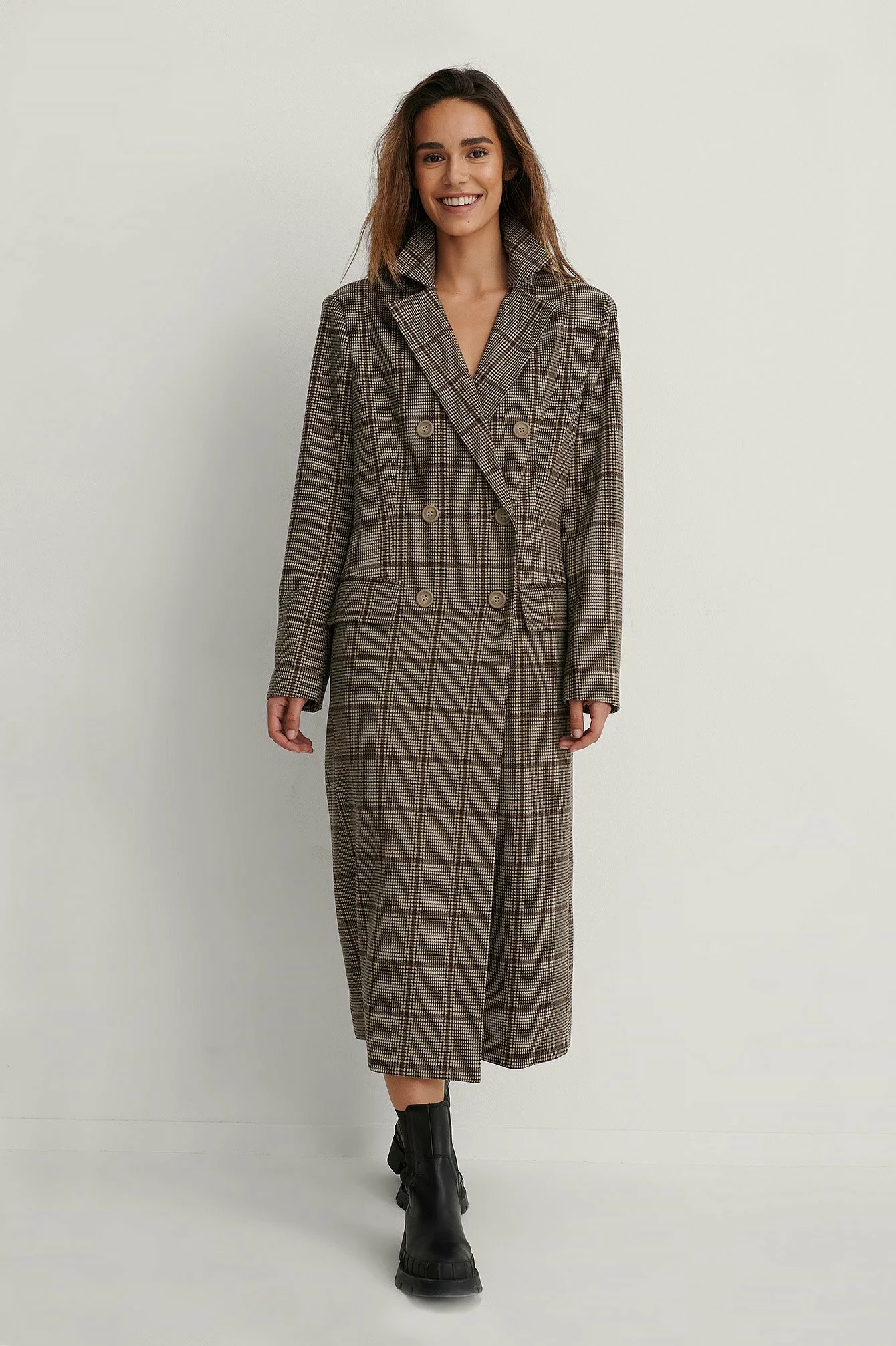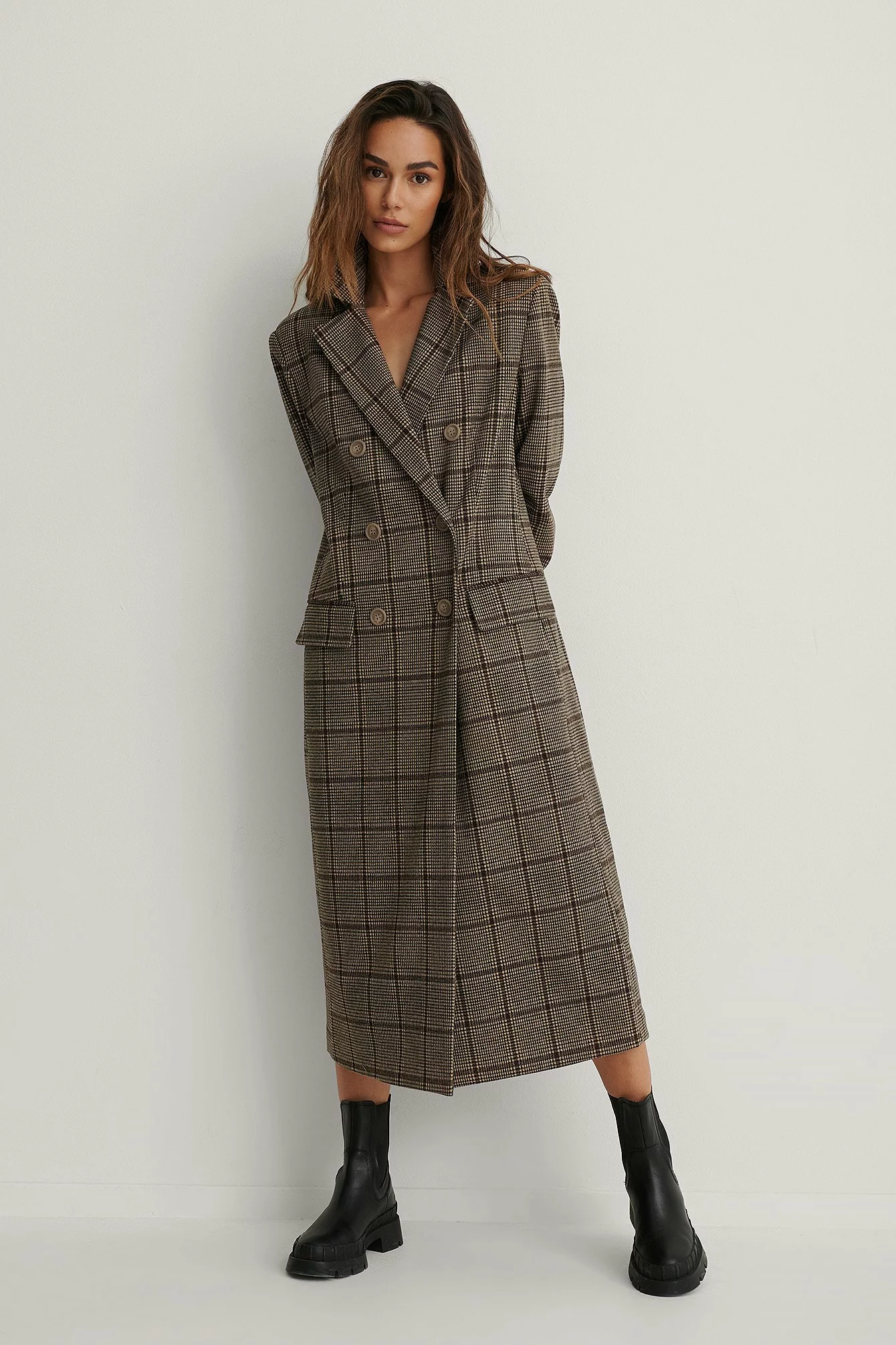 This coat features a lapel neckline, padded shoulders, long sleeves, four button closures on the front with two button details, front flap pockets, a back slit detail, a loose fit, a midi length and a lining. Feeling chilly? With this coat you won’t.