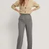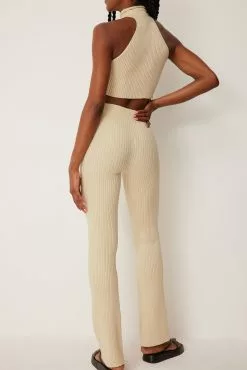 These pants feature an elasticized waistband, a high waist, straight legs and a stretchy, soft, ribbed knit material.