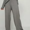 These pants feature an elasticized waistband, a high waist, straight legs and a stretchy, soft, ribbed knit material.