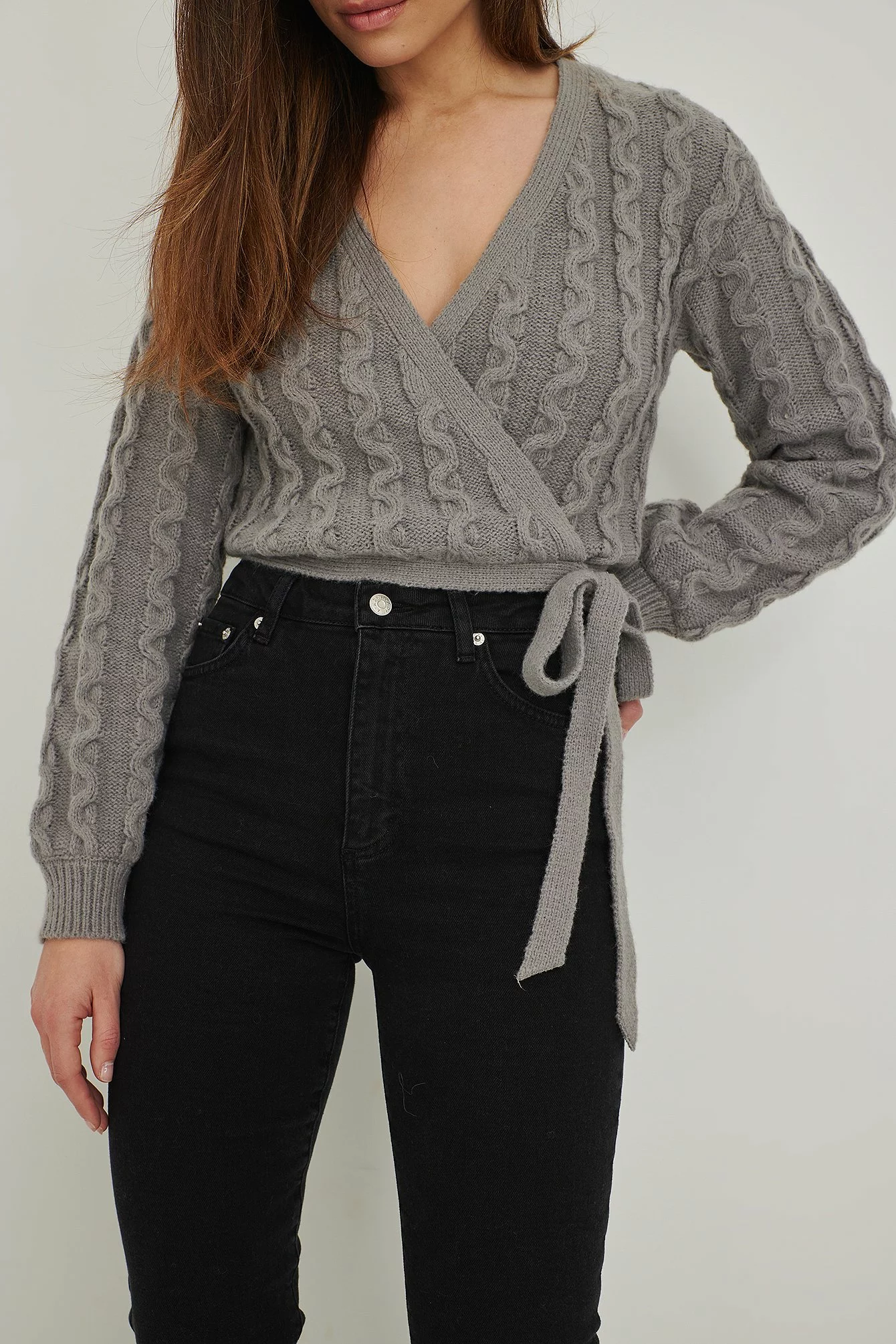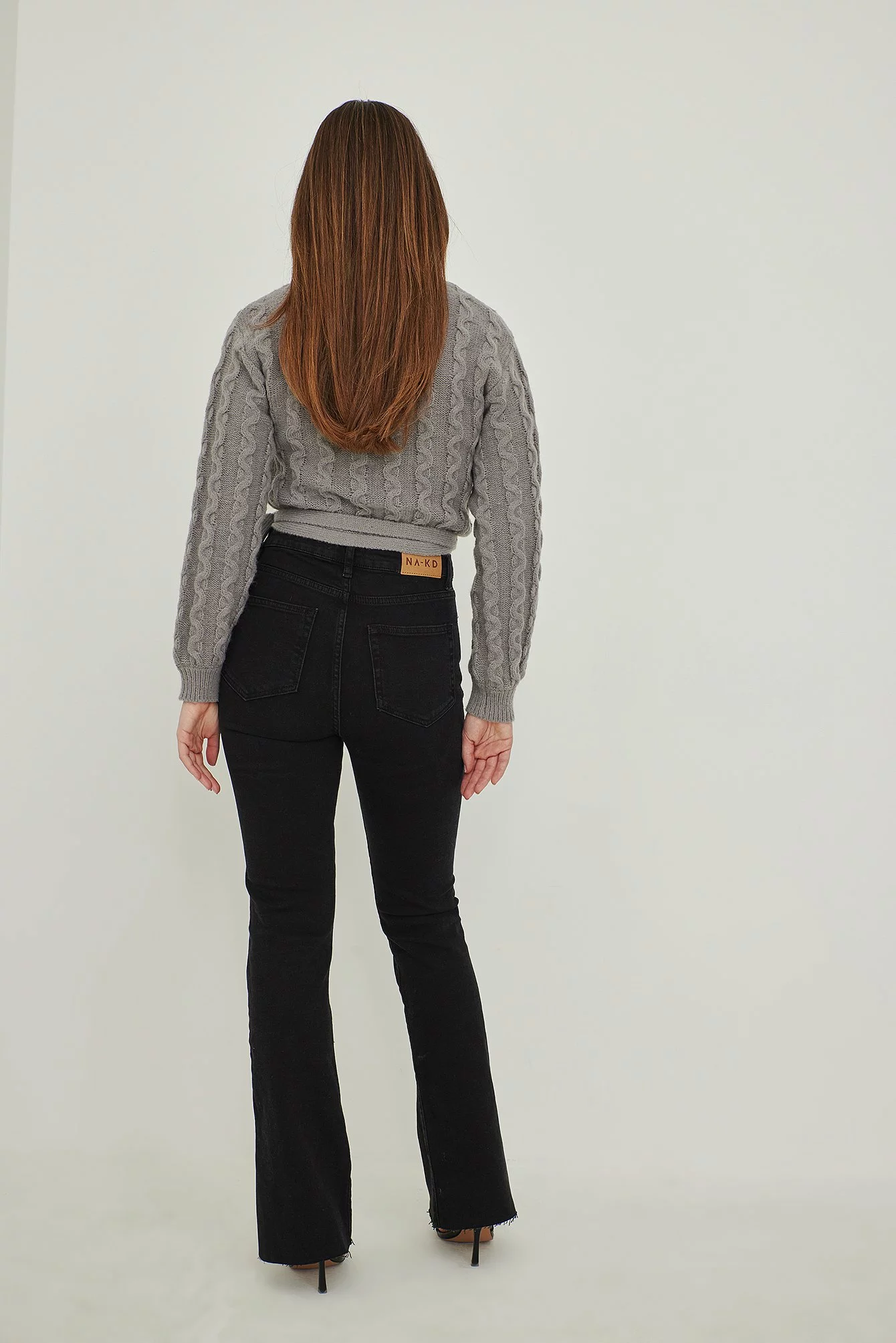 These 5-pocket jeans are boot cut and feature slits at the bottom. They have a high waist.