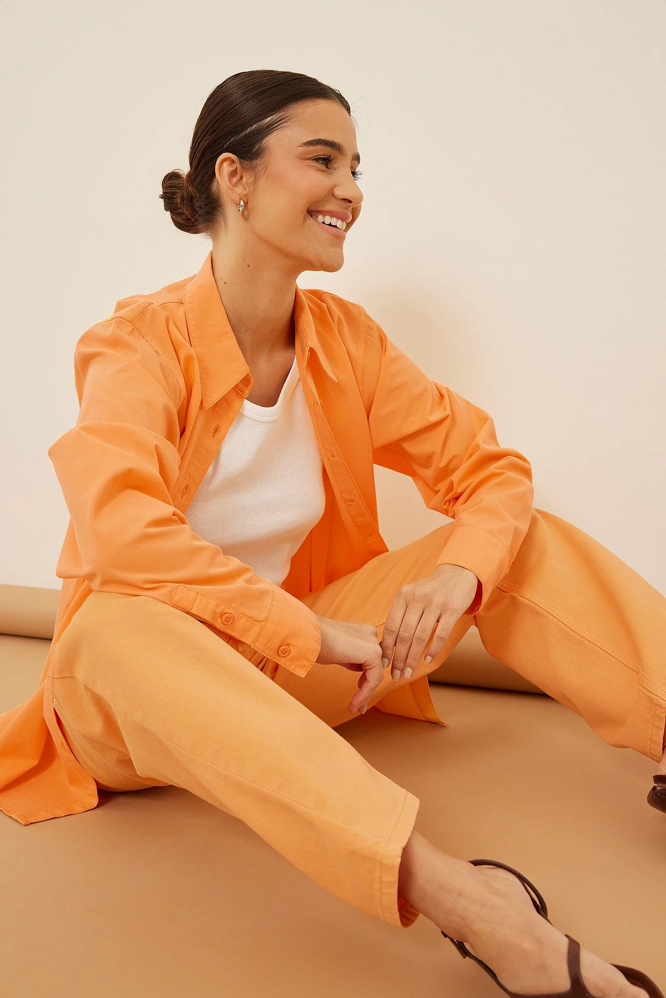 These 5-pocket jeans feature a zip and button closure. They have a high waist and a belt loop. These 5-pocket jeans feature wide legs.