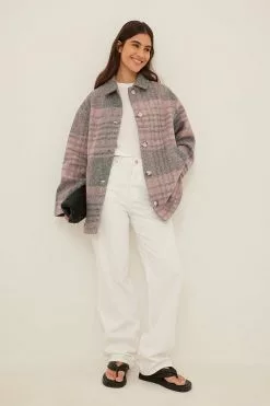 This jacket is made of wool blend and features a classic collar, long sleeves, a button closure along the front, open side pockets and a rounded hem.