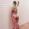 These trousers feature a high waist, a zipper, hook and button closure, two side pockets, two mock pockets on the back and a wide leg.