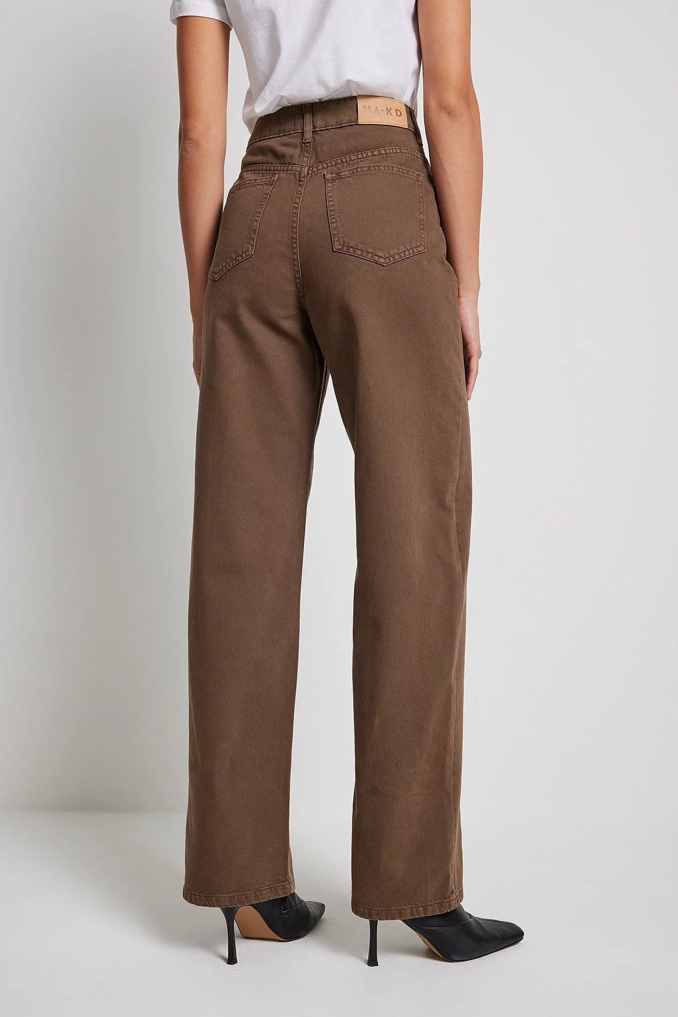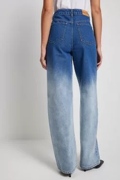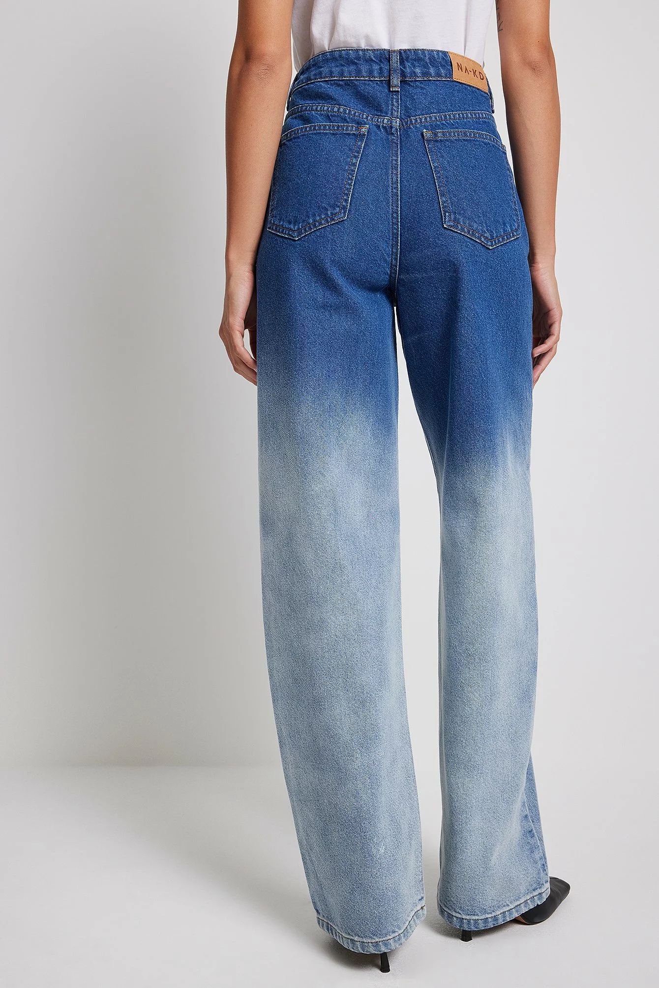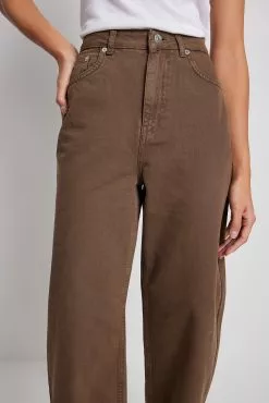 These jeans feature a high waist with belt loops, a zip and button closure, a five-pocket design and a wide leg.