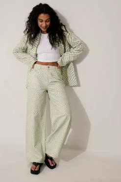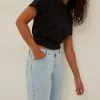 These jeans feature a high waist, a five-pocket design and wide legs.