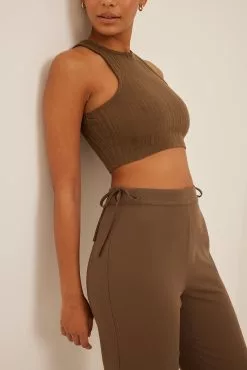 These suit pants feature a high waist, a side zipper closure, tie knot details on the hip and wide legs.