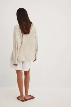 This shirt features oversize fit. It has a classic collar and long sleeves. This shirt features a button closure down the front, a chest pocket and a slit detail on the sides.