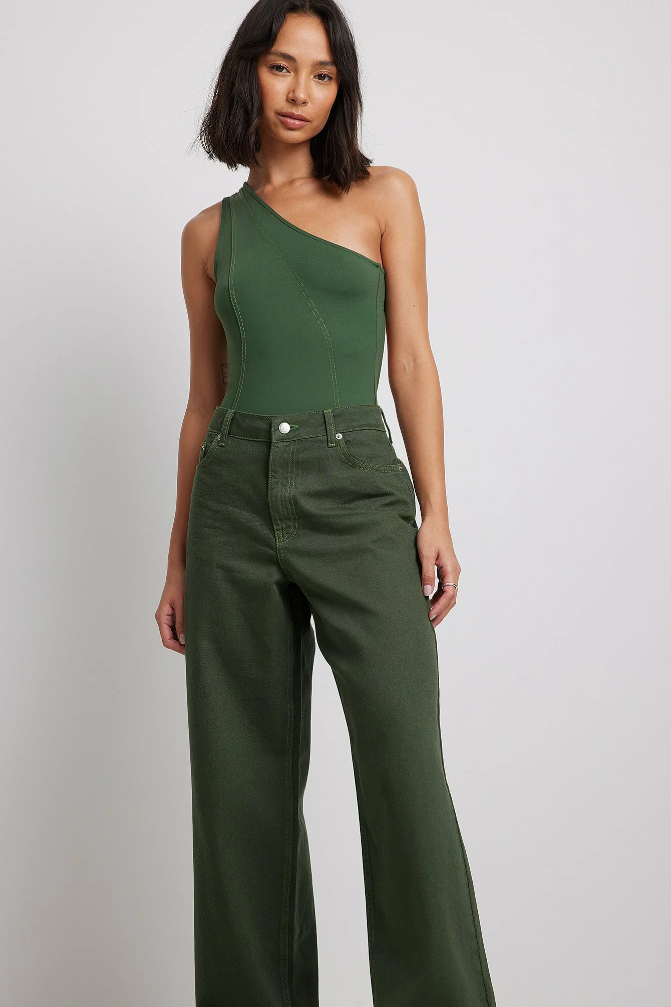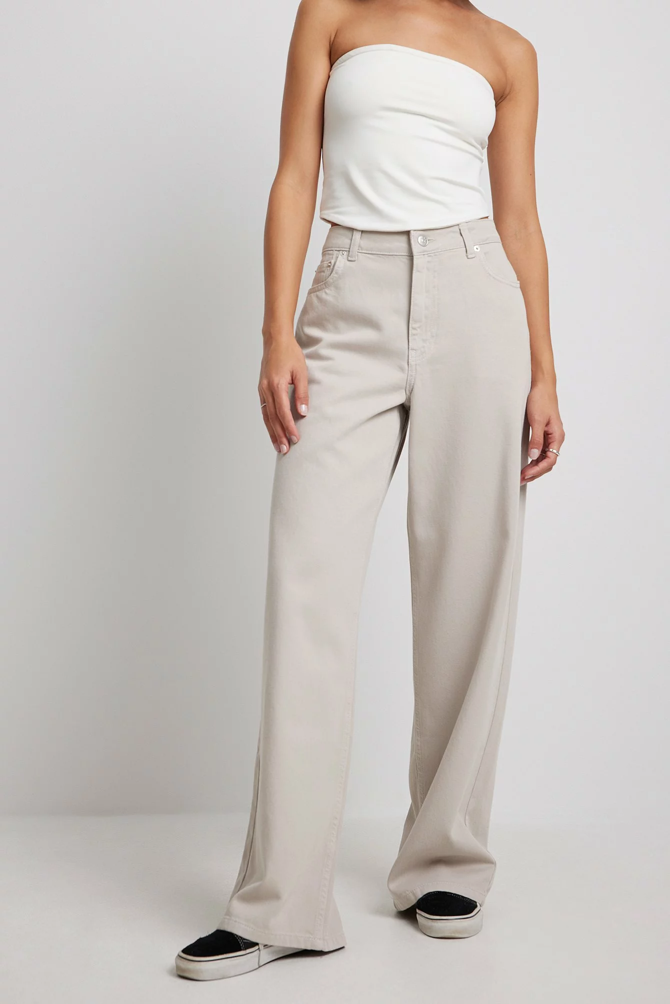 These jeans feature a five-pocket design, a mid waist and a straight fit with wide legs.
