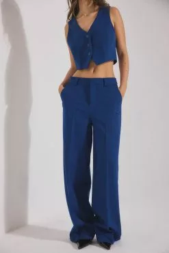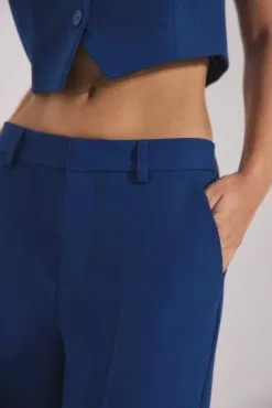 These trousers are tailored and oversized and feature a mid waist. They have a wide leg and a zipper, hook and button closure. These trousers feature side pockets.