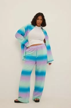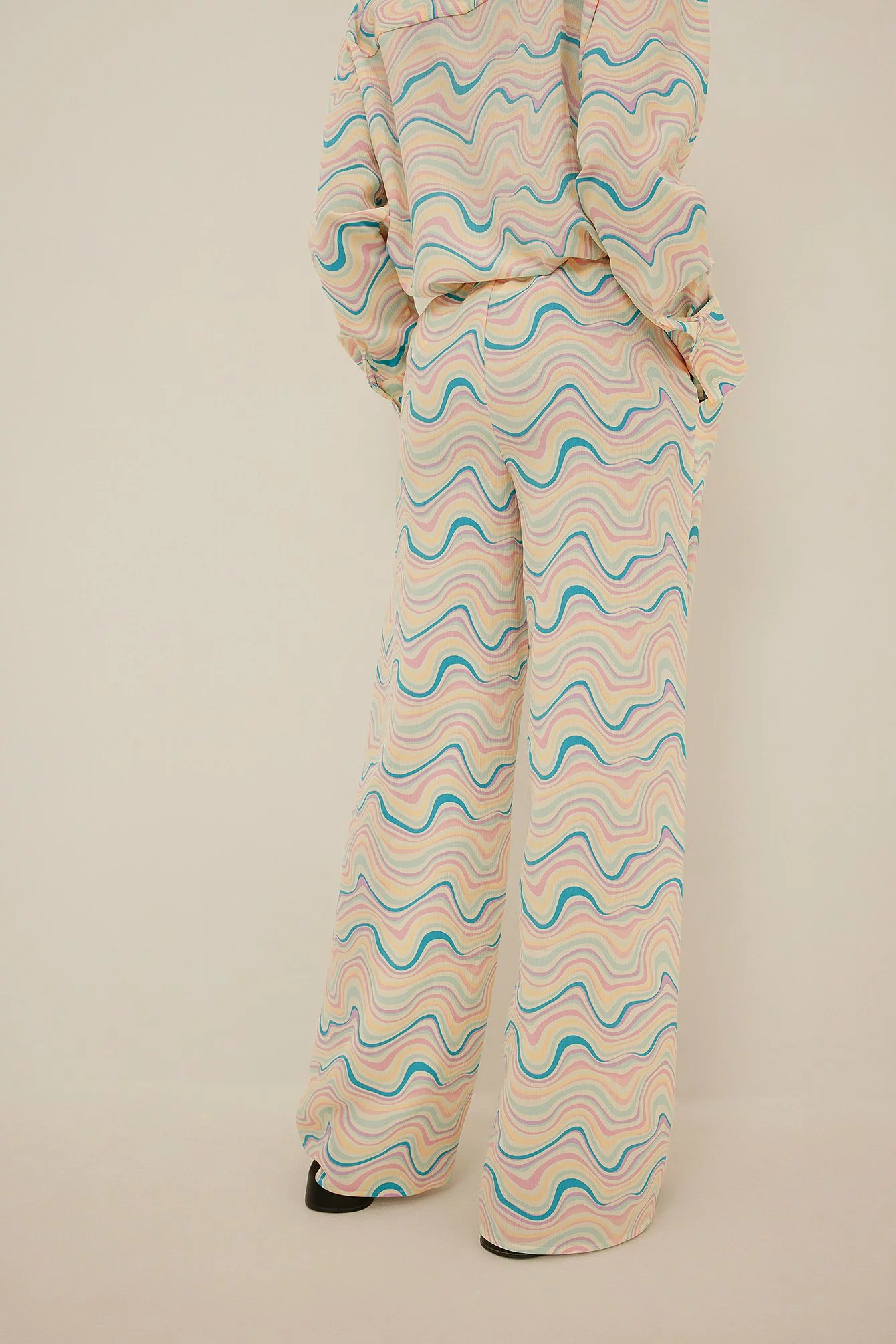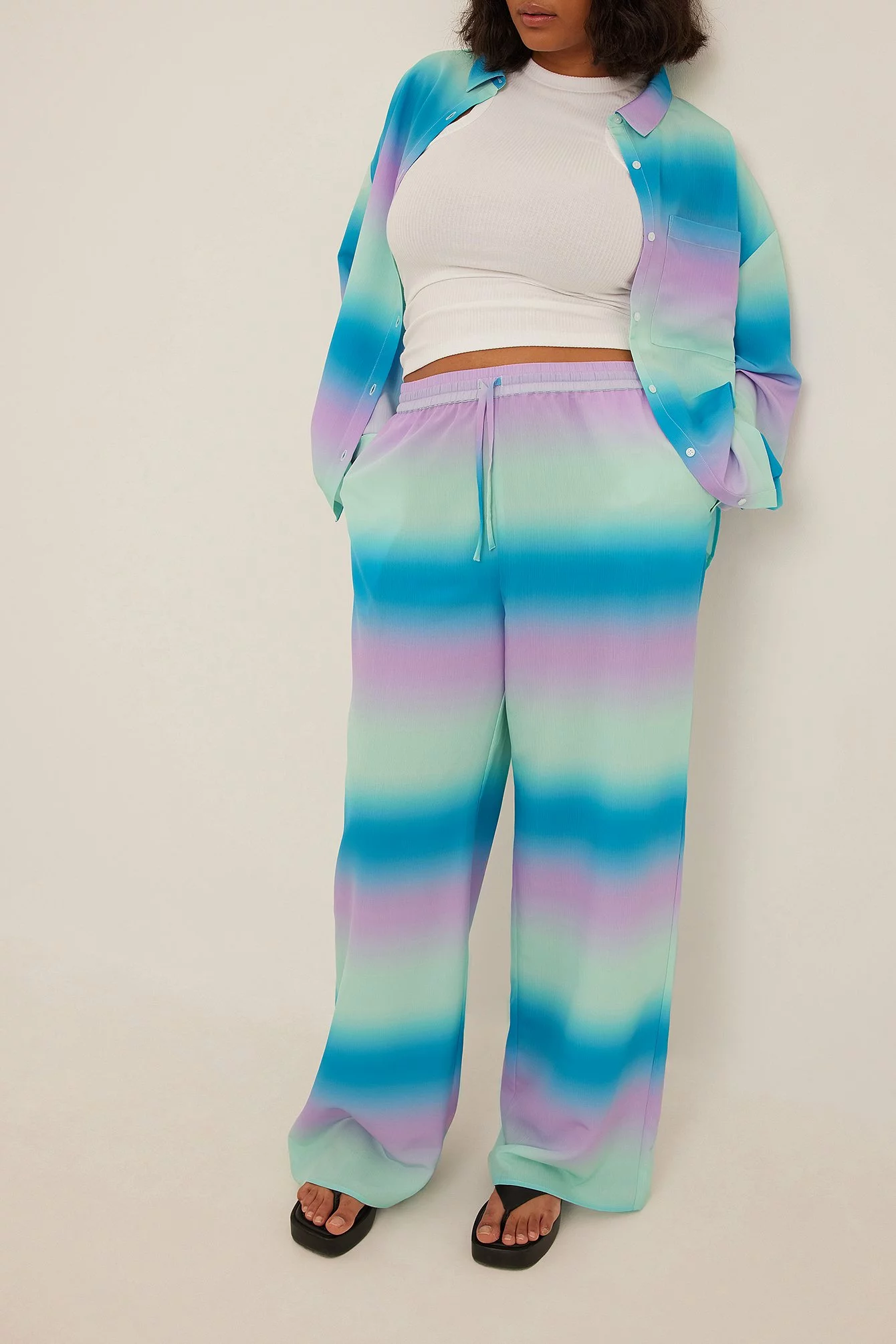 These trousers feature a high waist, an elasticized waist with an adjustable drawstring with a self-tie knot, side pockets, wide legs and a structured material.