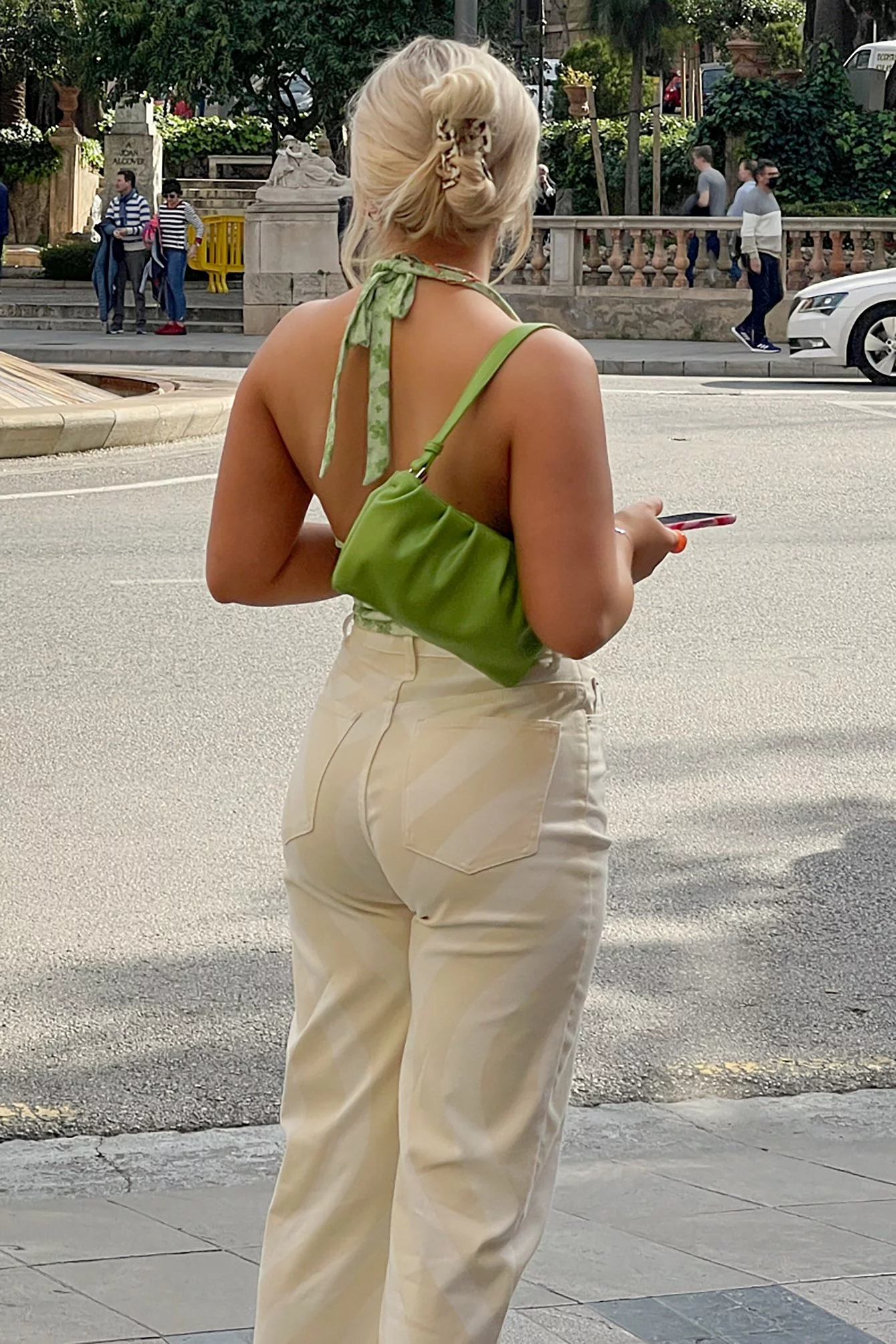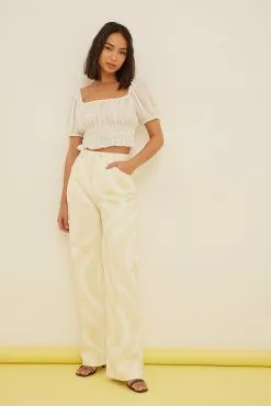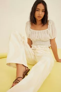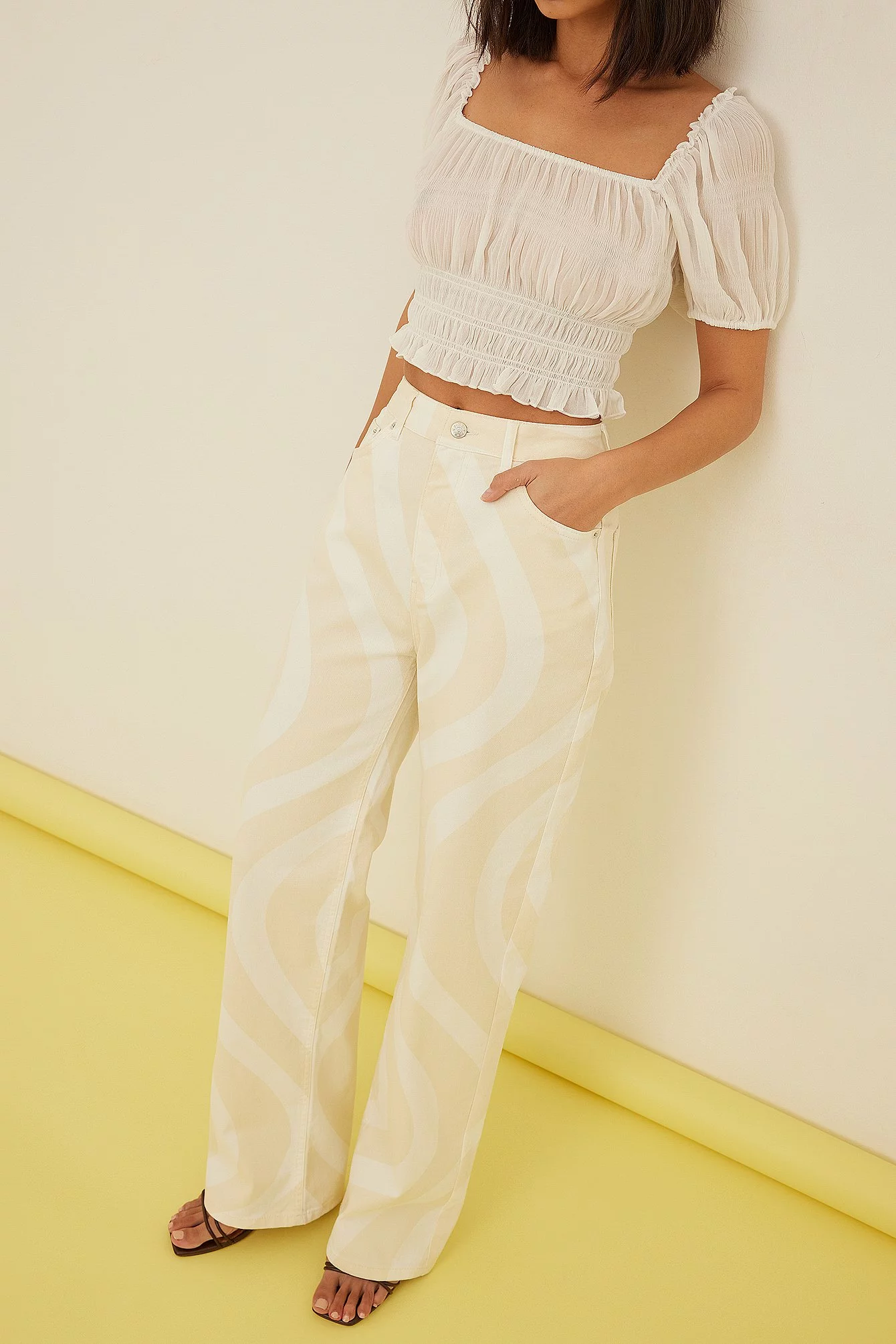 These 5-pocket jeans feature a high waist with a belt loop, a zip and button closure and wide legs.
