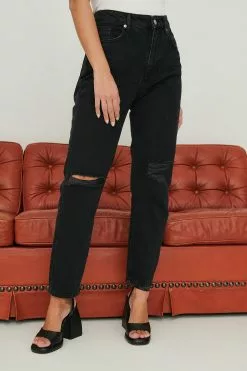 These 5-pocket jeans feature a high waist. They have a straight leg and a color gradient design.