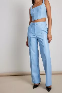These trousers feature a straight leg, side slant pockets, seam details along the item and back mock pockets.
