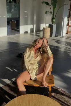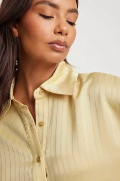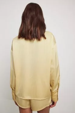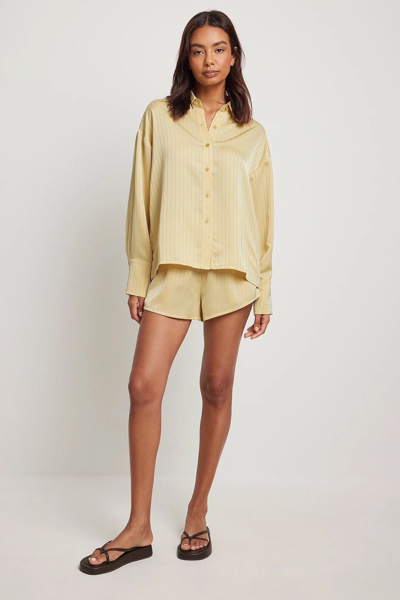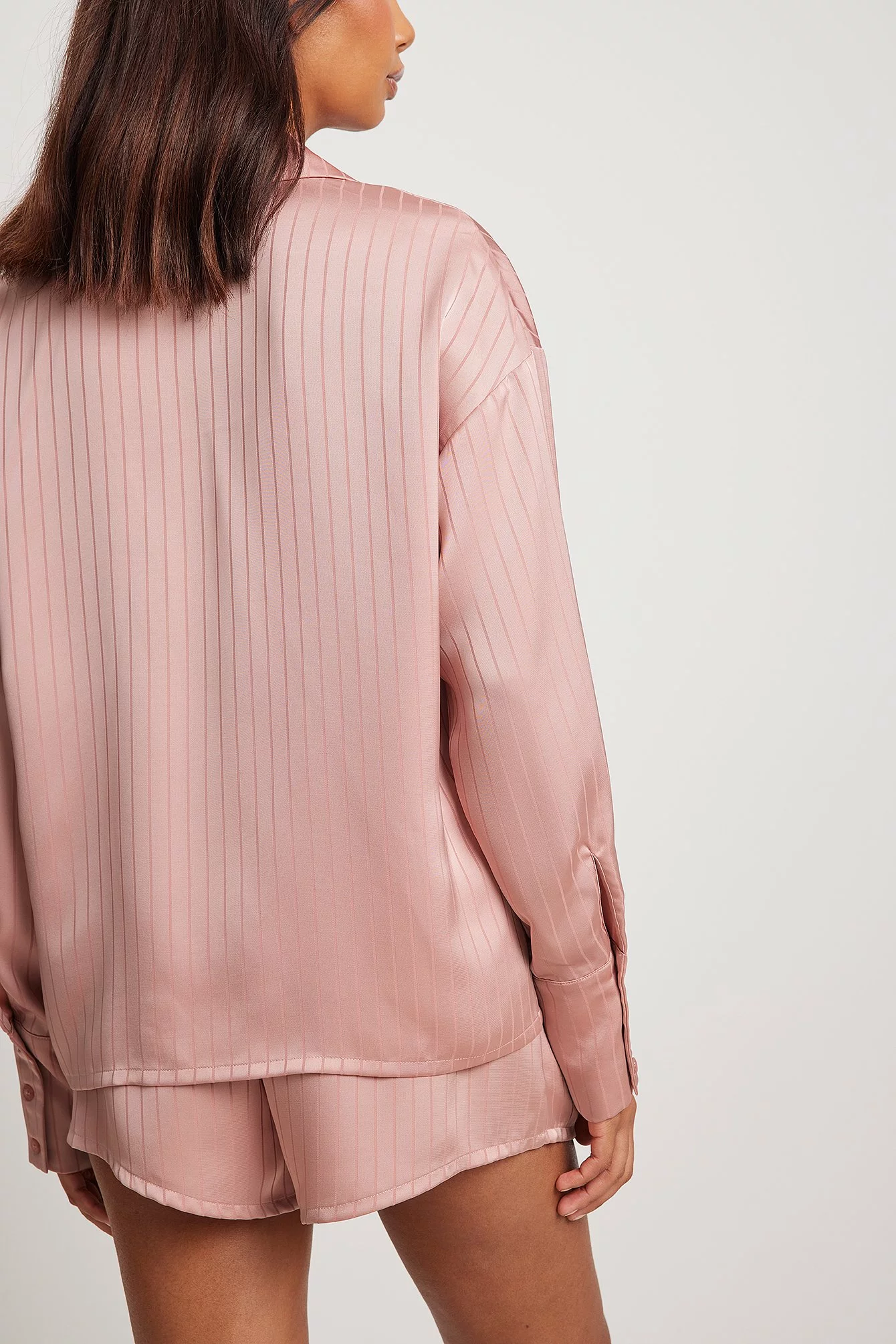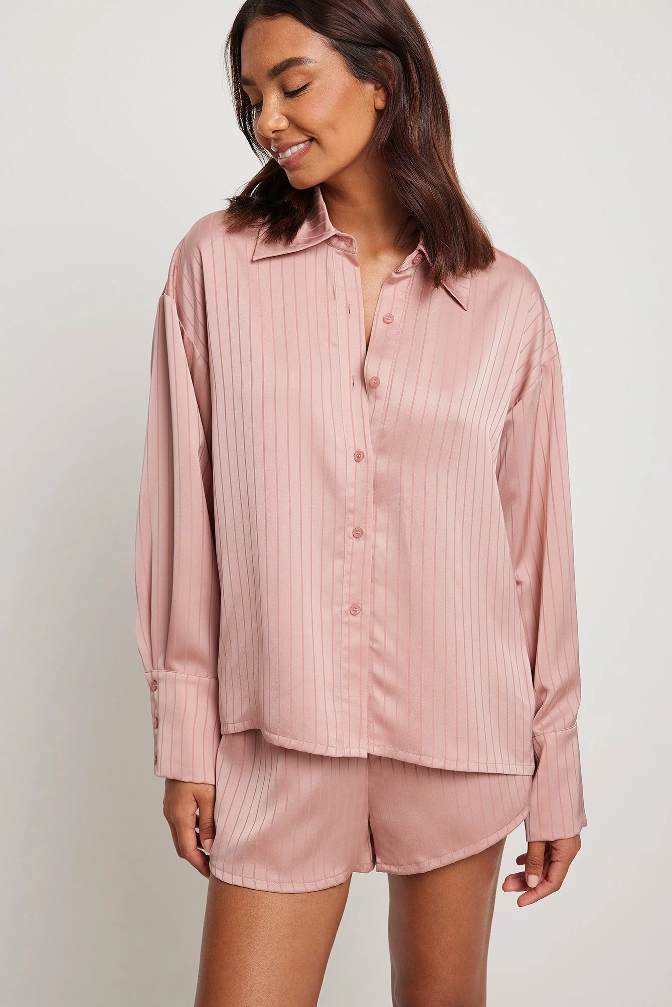 This shirt features a classic collar, a button closure down the front, long sleeves with triple button cuffs, an oversized fit and satin material with strap details.
