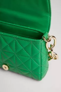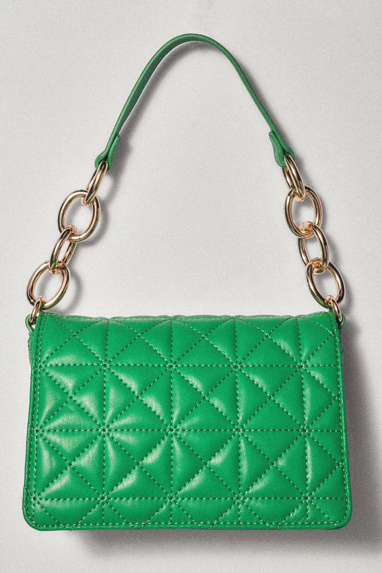 This bag features a material in PU. It has a non adjustable, non removable strap with a chain detail and a main compartment. This bag features an inner pocket with a zipper closure, a magnetic closure, a small brand logo on the inside and a quilted design. Measurements: Height: 14 cm / 5.51 in. Width: 3 cm / 1.18 in. Length: 20,5 cm / 8,07 in. Strap length: 42 cm / 16.53 in.