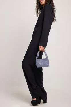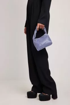This bag features rhinestones with a twisted handle, a magnetic closure and an inner pocket. Measurements: Height: 14 cm / 5.5 in. Width: 7 cm / 6 in. Length: 21 cm / 8 in. Strap length: 33 cm / 13 in.