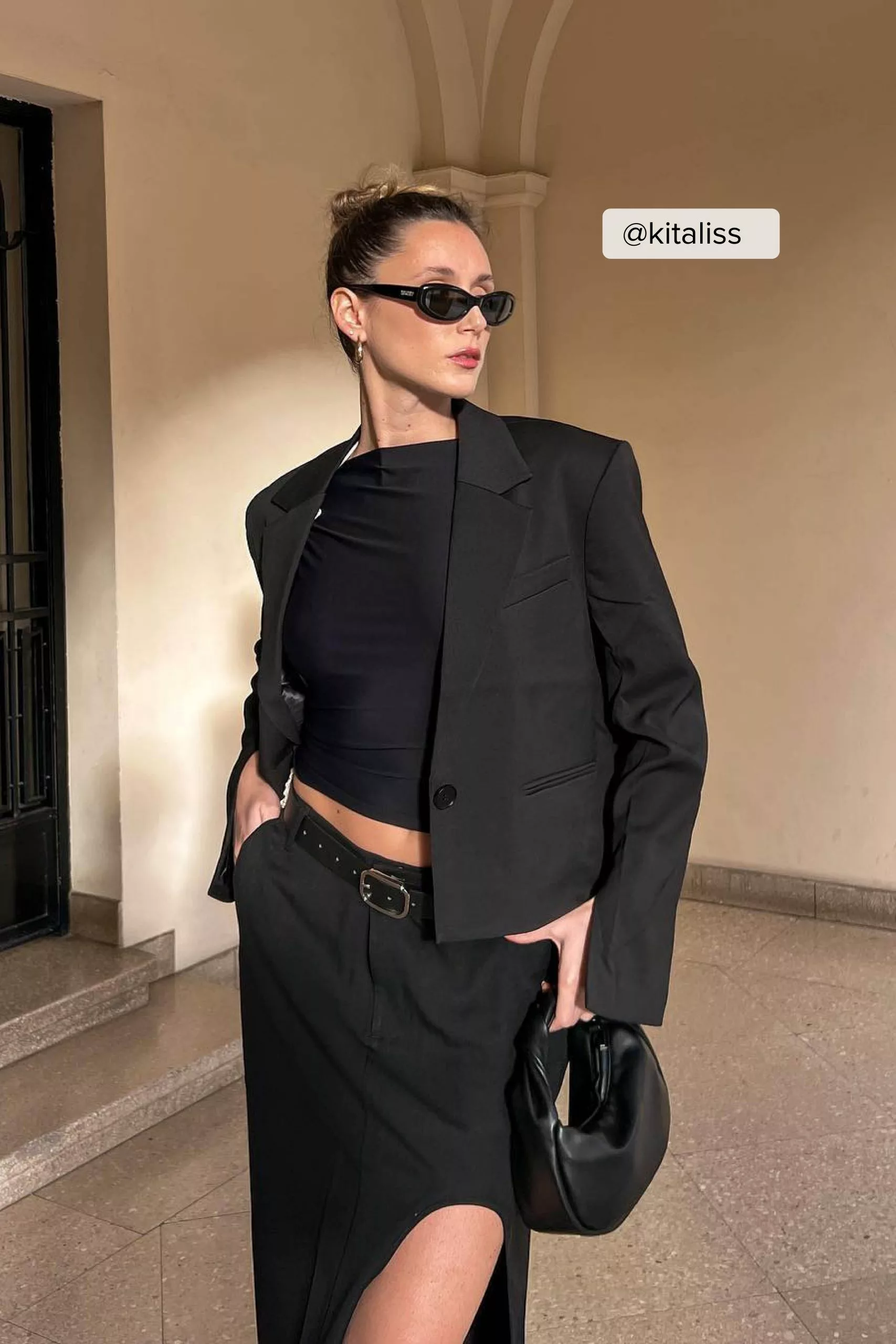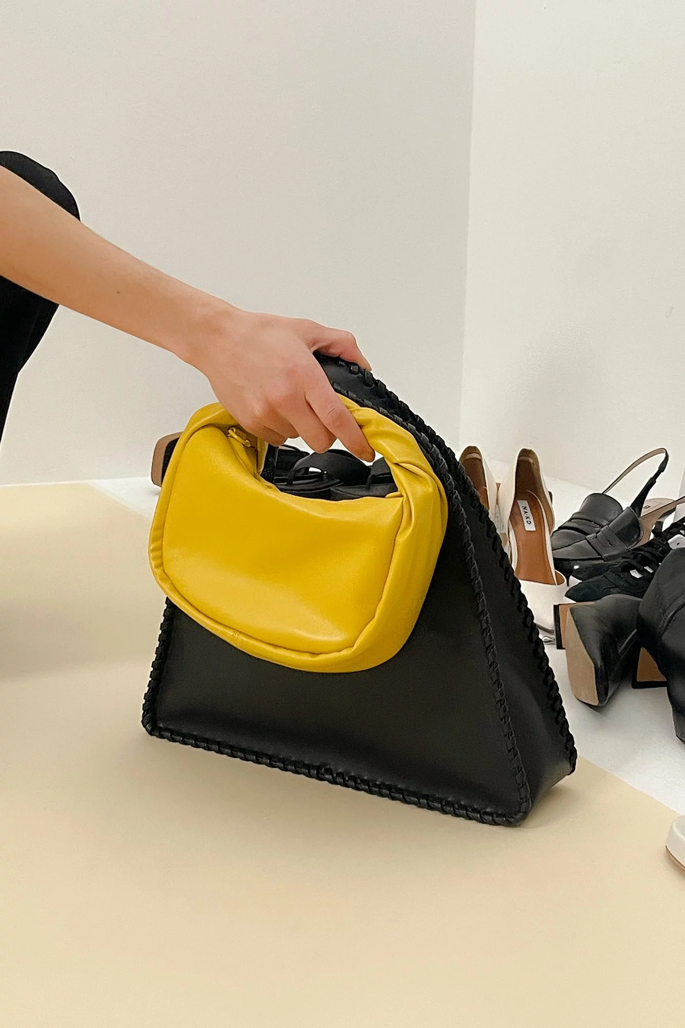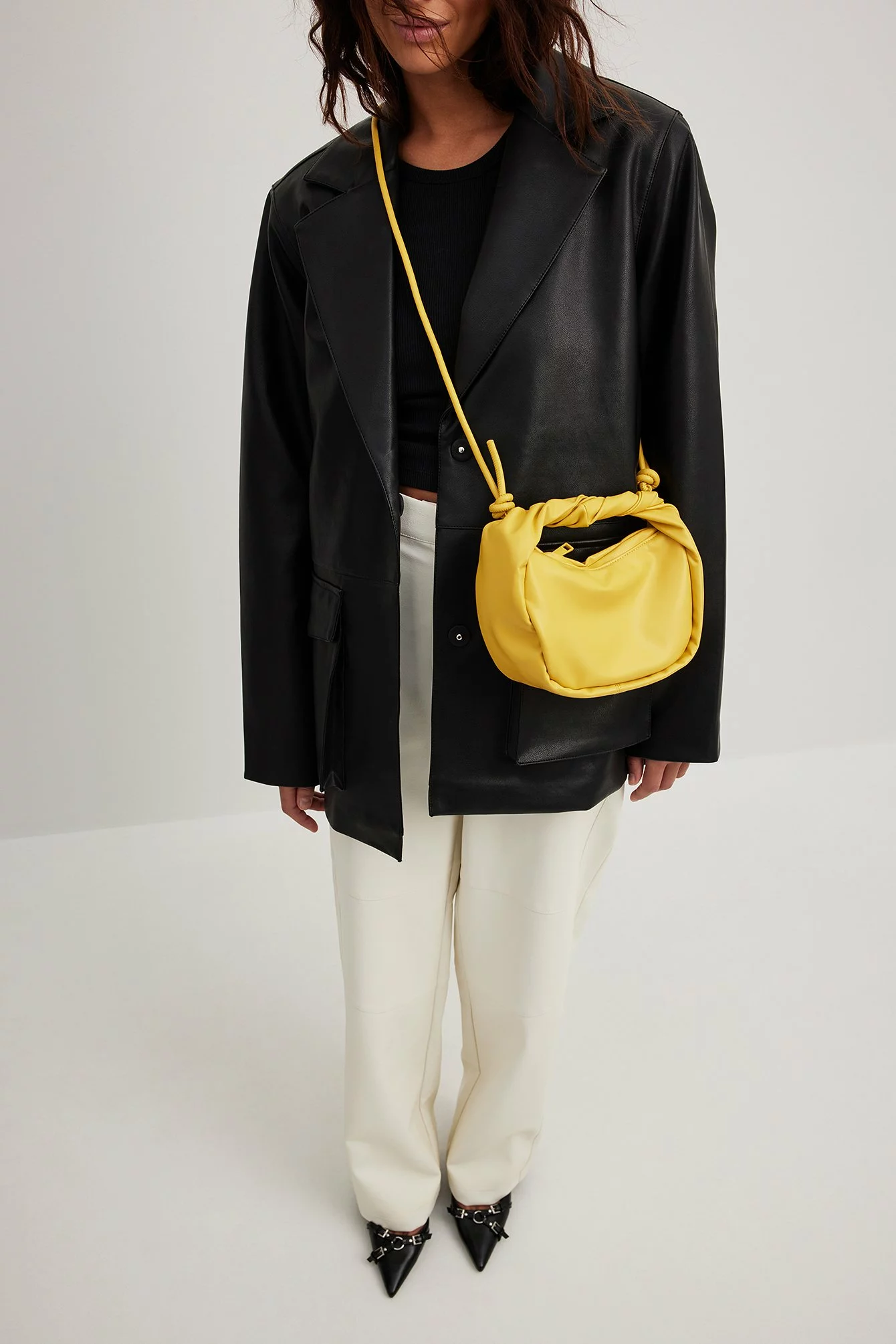 This handbag features a mini size. It has 1 non removable handle with a twist detail and 1 non adjustable, removable shoulder strap. This handbag features a compartment with a zipper closure and 2 inner pockets. Measurements: Height: 12 cm / 4.8 in. Width: 7 cm / 2.8 in. Length: 19 cm / 7.5 in. Strap length: 19 cm / 7.5 in. Measurements: Height: 12 cm / 4.8 in. Width: 7 cm / 2.8 in. Length: 19 cm / 7.5 in. Strap length: 118 cm / 46.4 in.