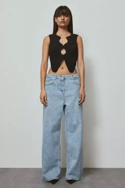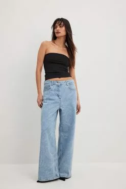These jeans are oversized and feature a low waist. They have a loose fit and a five-pocket design.