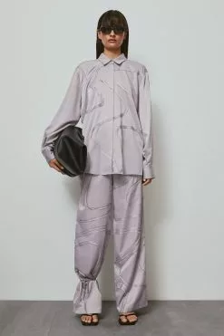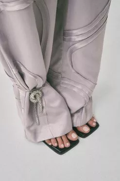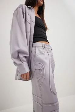 These trousers feature a high waist fit. They have a straight leg and side slant pockets. These trousers feature wavy seam details along the item and a zipper, hook and button closure.