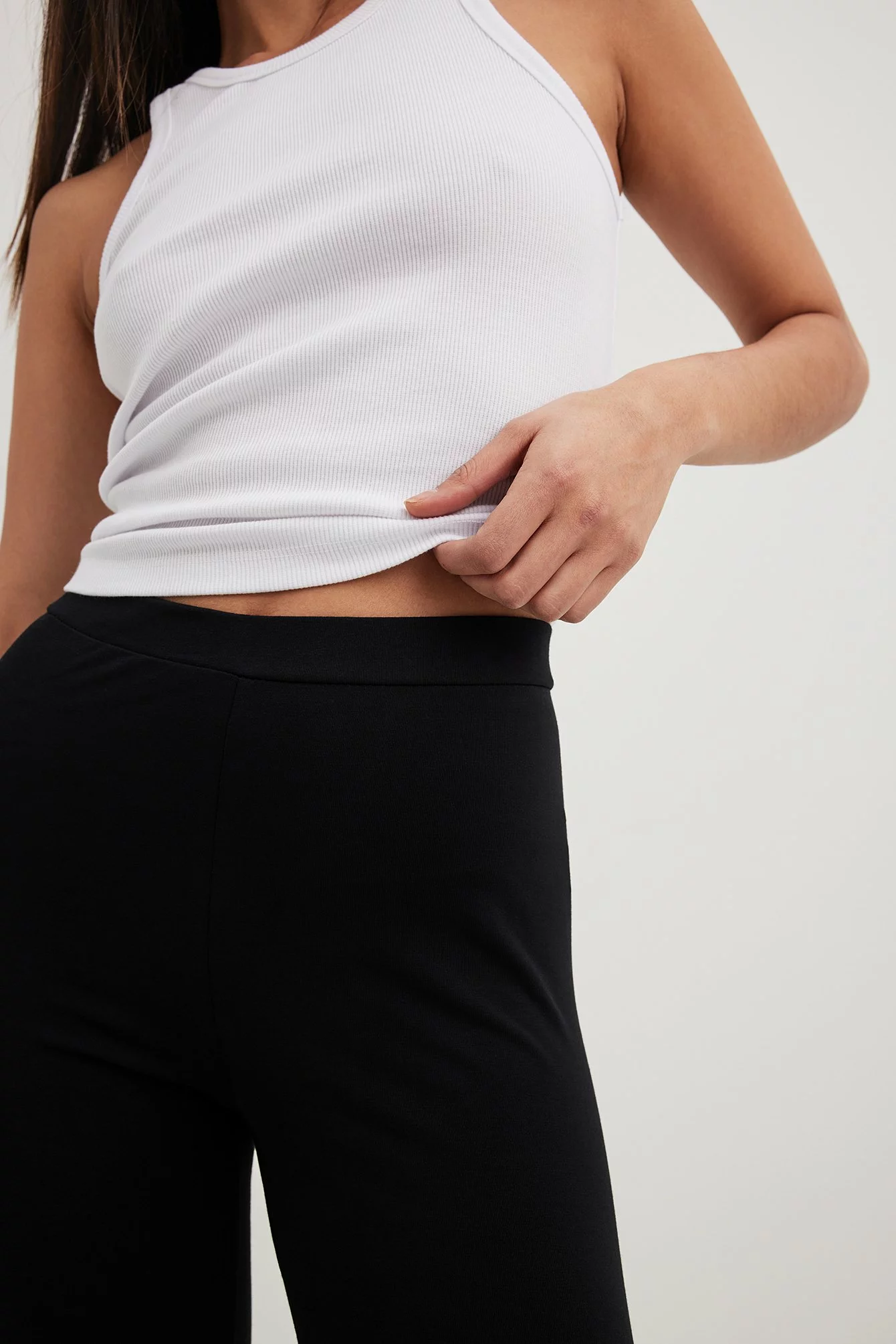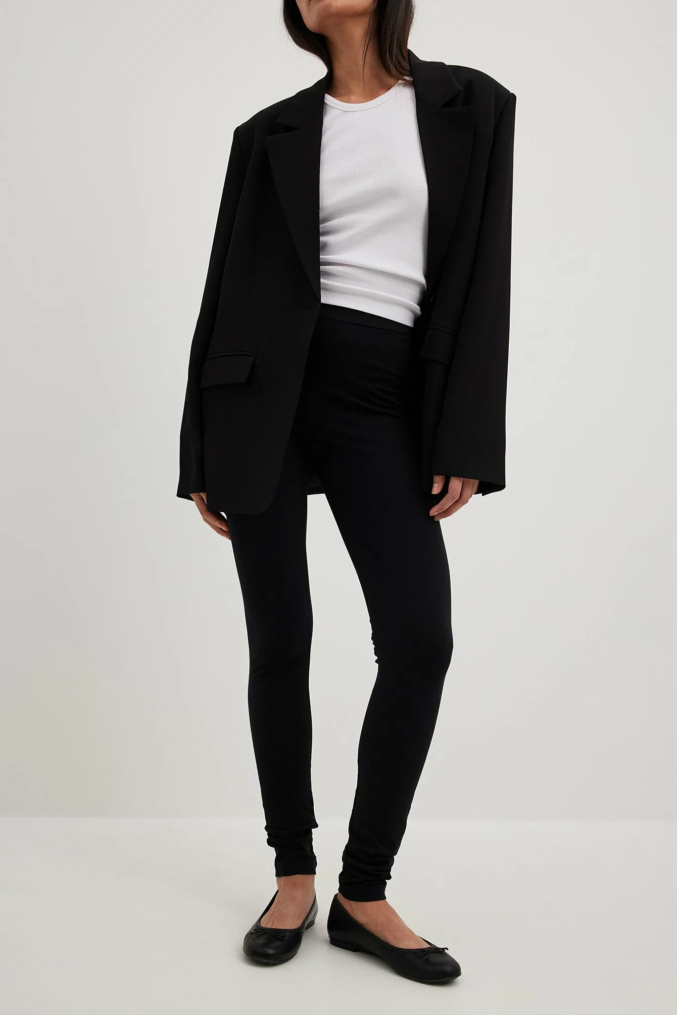 These leggings feature a high waist with an elasticized waistband, a slim fit, a stretch fabric and a soft touch.