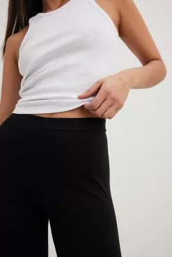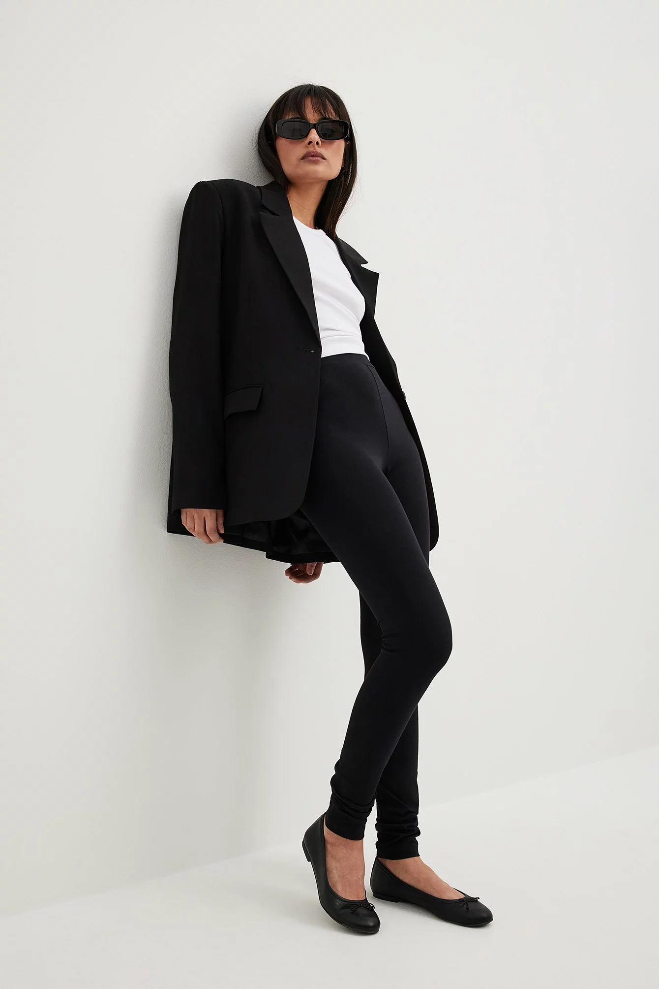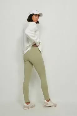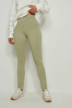 These leggings feature a high waist with an elasticized waistband, a slim fit, a stretch fabric and a soft touch.