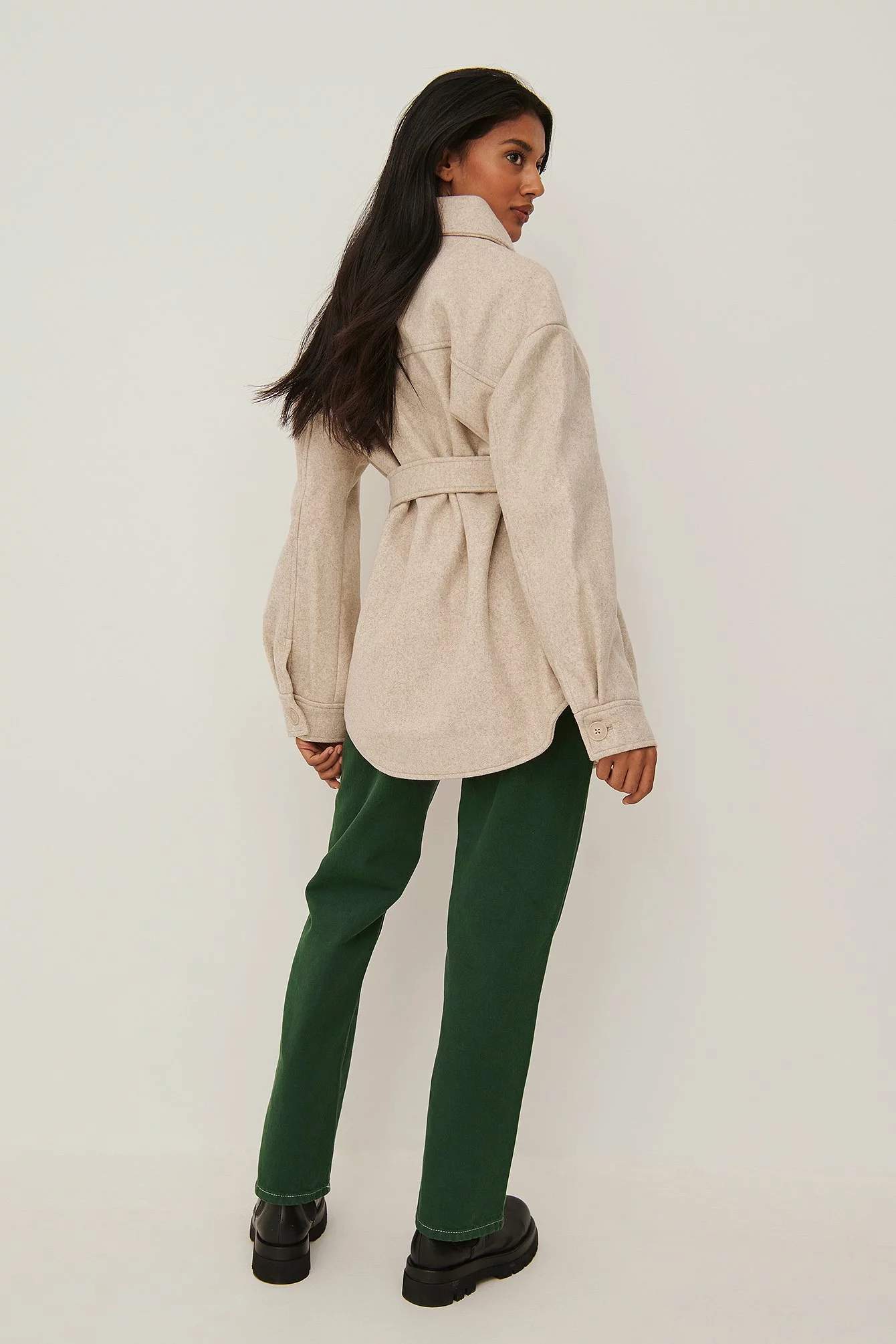 This jacket features a classic collar, long sleeves with button cuffs, two front flap pockets, a button closure along the front, a waistbelt with a square buckle closure, underlining and a cozy, soft material. This product is big in size, we recommend you to choose a size smaller than your usual.