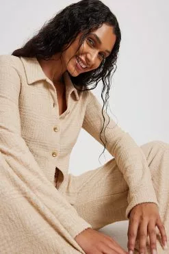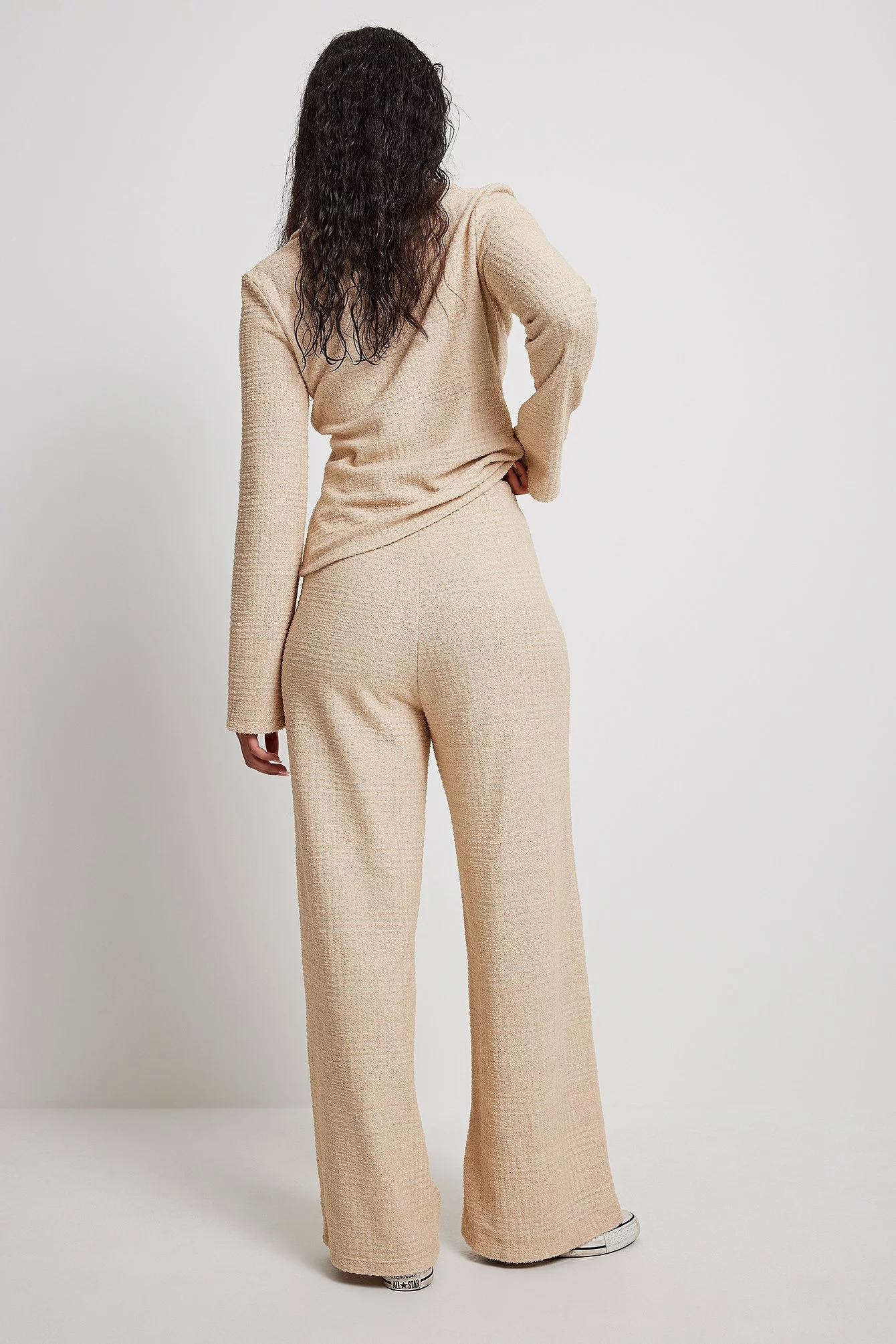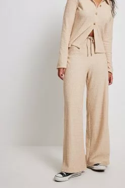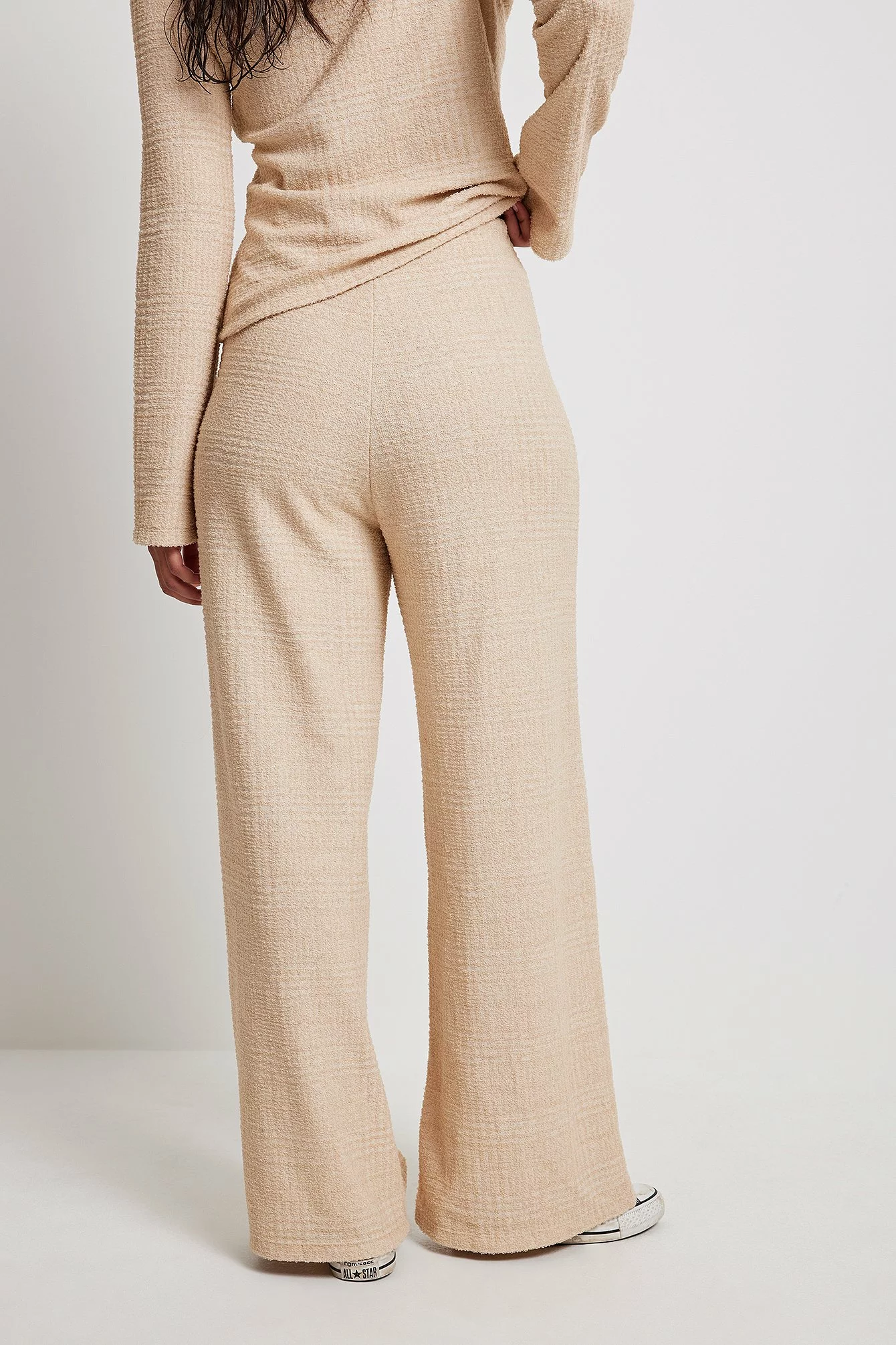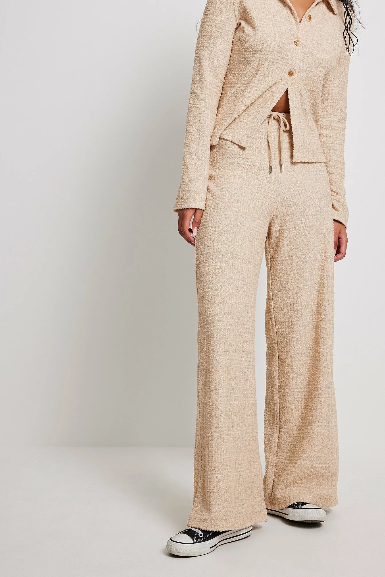 These trousers feature a drawstring waist, a brushed fabric and a wide leg.