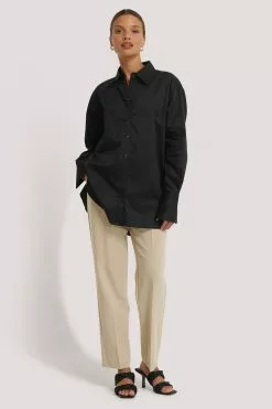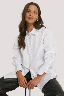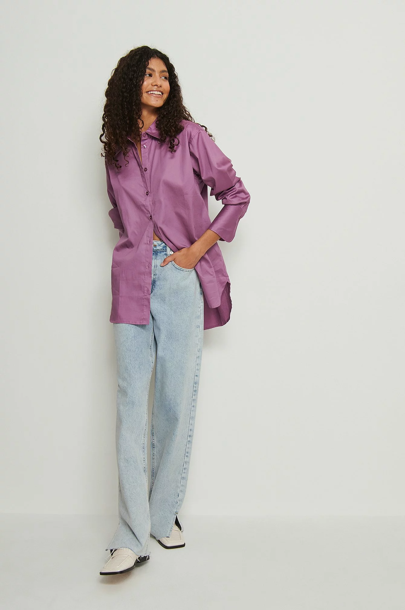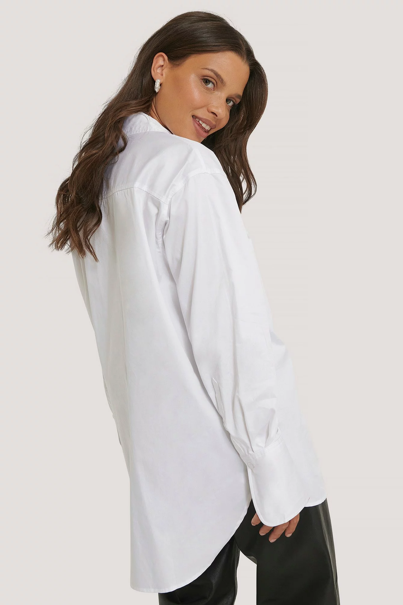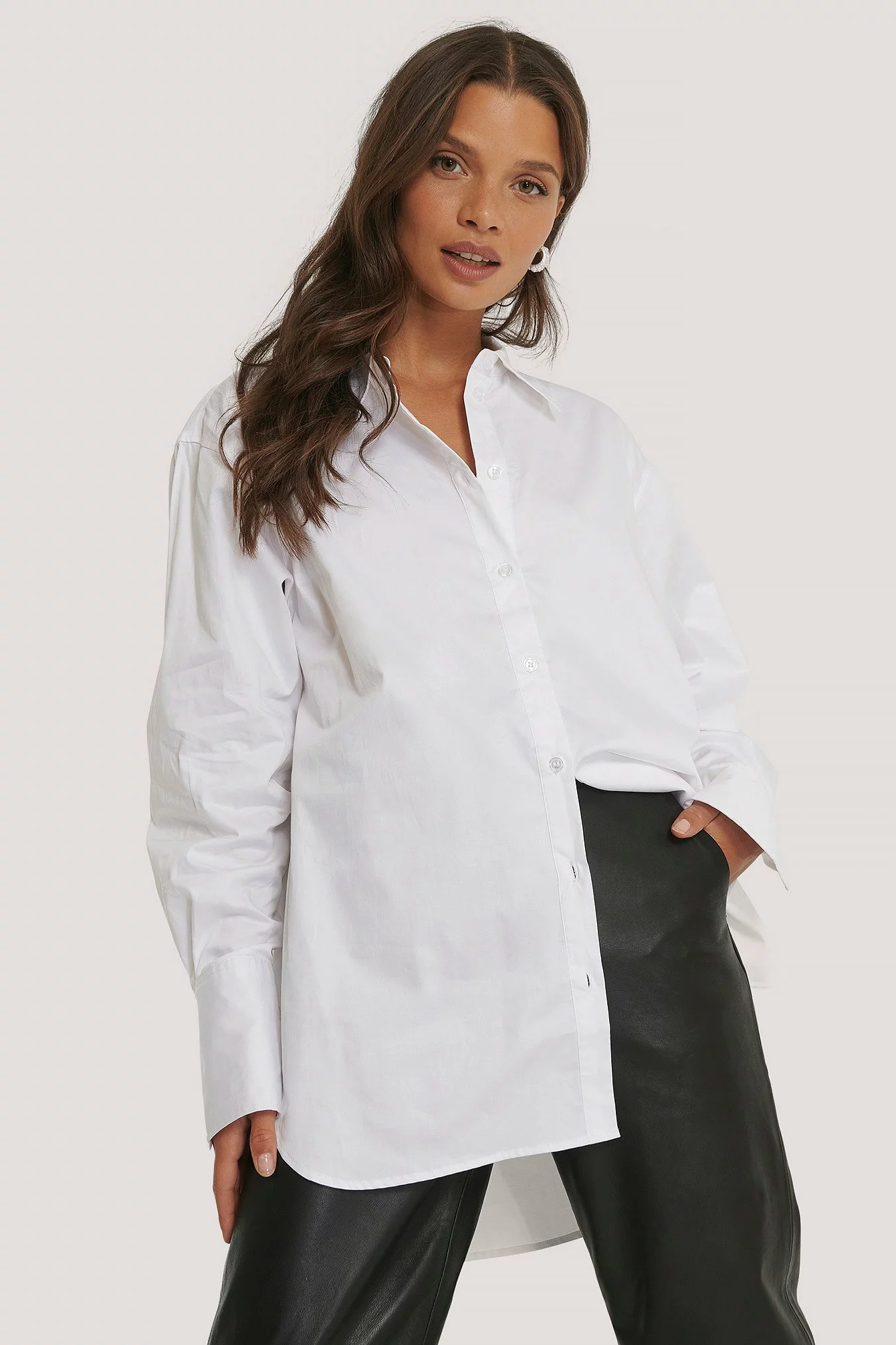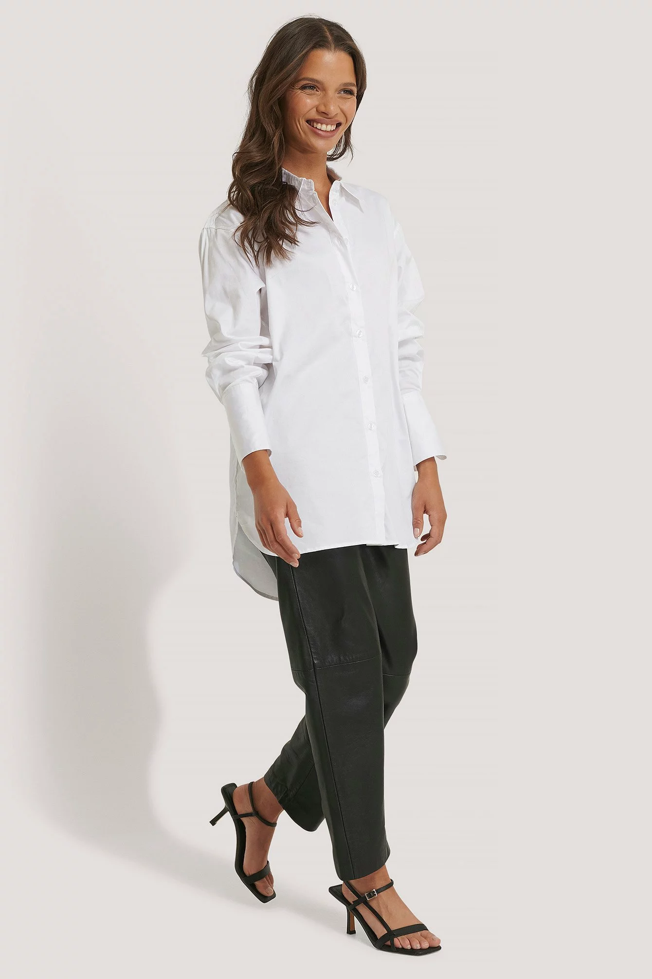 This shirt features a classic collar. It has long sleeves with button closures on the cuffs and button closures down the front. This shirt features a slightly longer style on the back.