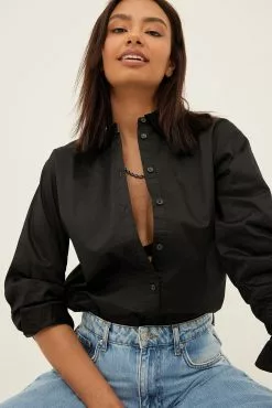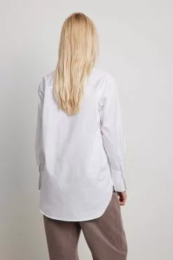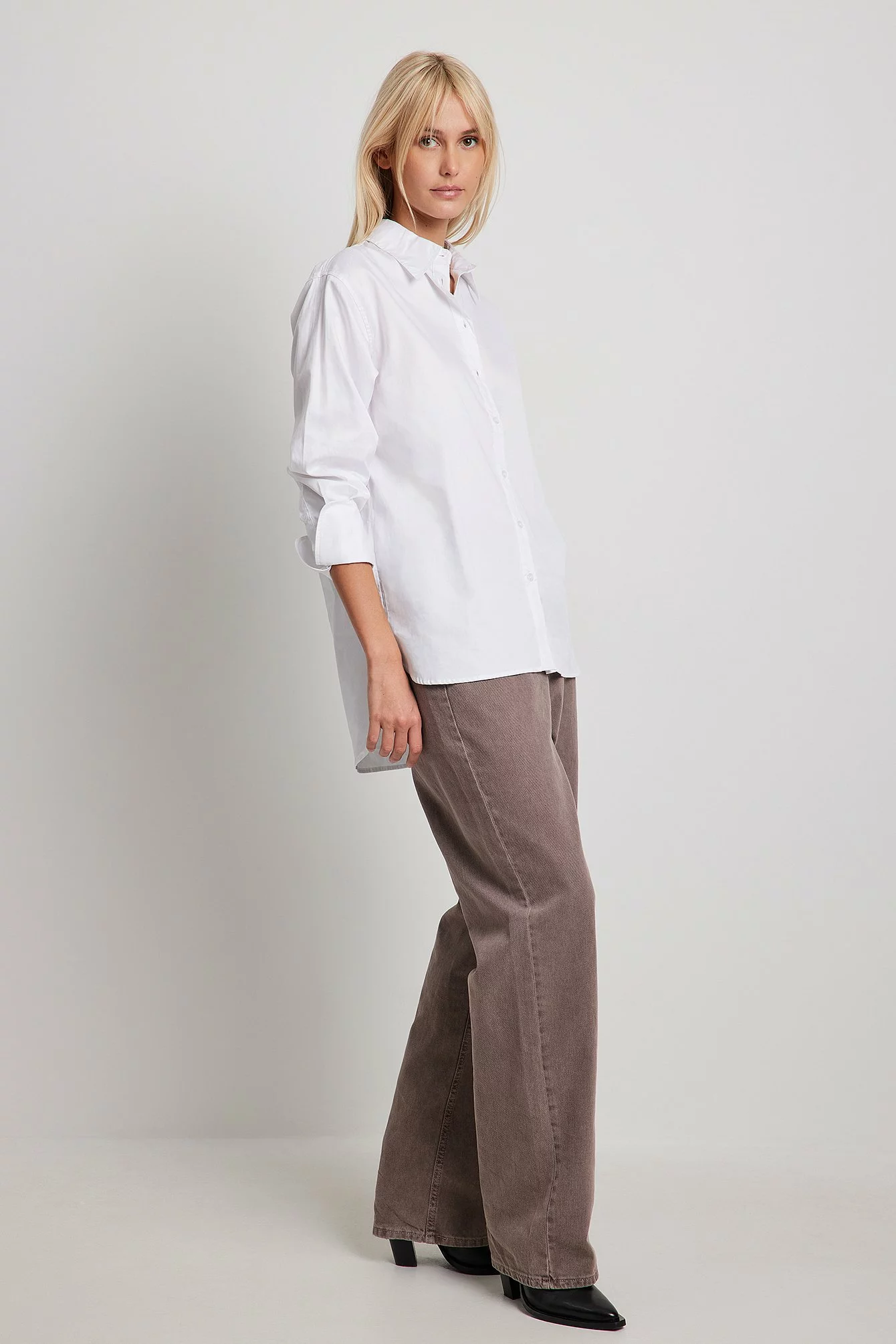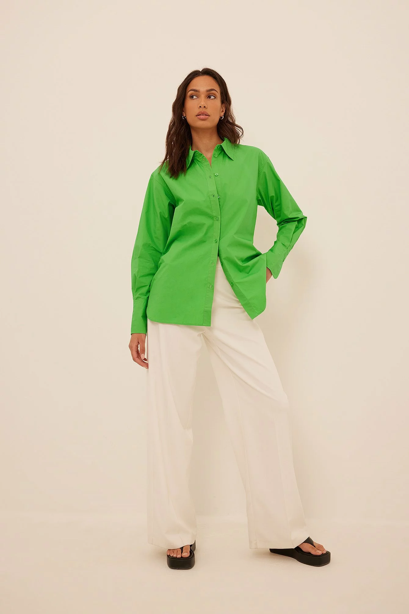 This shirt features a classic collar, a button closure down the front, long sleeves with button cuffs and an oversized fit.