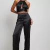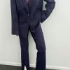 These trousers are pleated and feature a slim fit. They have a high waist with belt loops and open side pockets. Our trousers feature cropped length, back mock pockets and a zip and hook closure. Inseam length in size 36: 70 cm / 27.55 in.