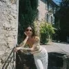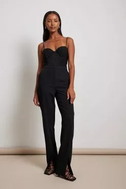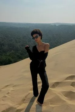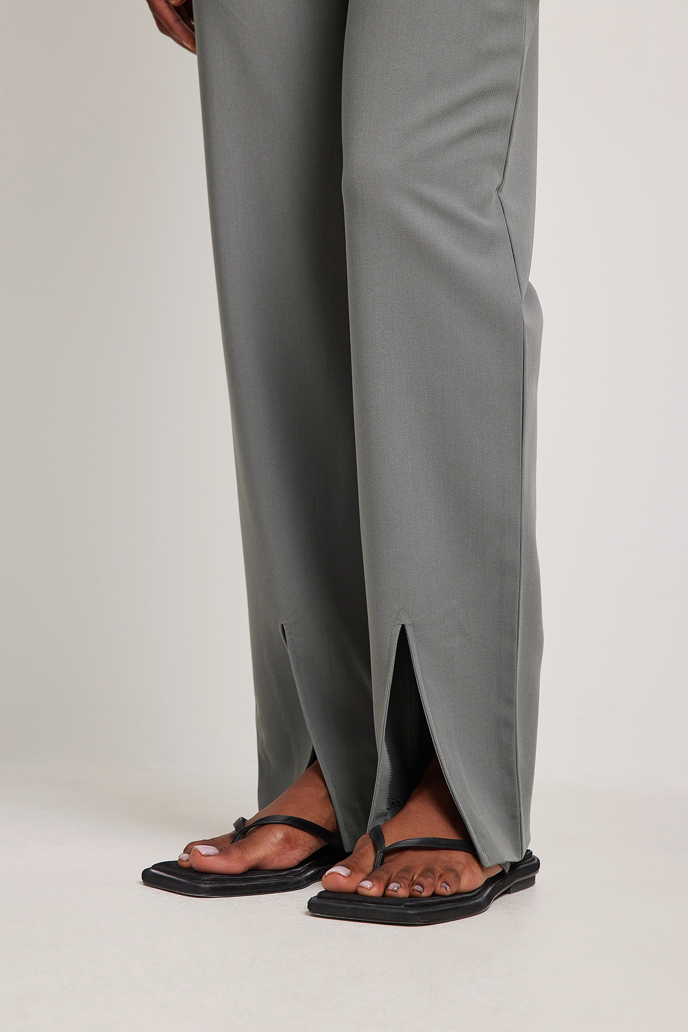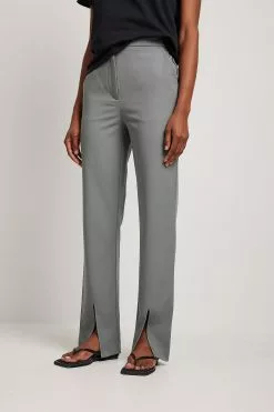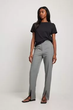 These trousers are tailored and feature a straight leg. They have a high waist and front slits. These trousers feature a side pocket. Inseam length in size 36: 82 cm / 32.28 in.