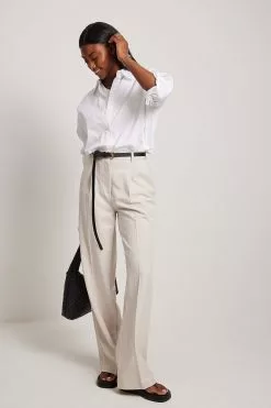These suit pants feature a fabric with contrast-colored threads. They have a high waist with a zipper, hook and button closure and a belt loop. These suit pants feature side slanting pockets, long wide legs and back mock pockets. Inseam length: 83 cm / 32.67 in.