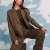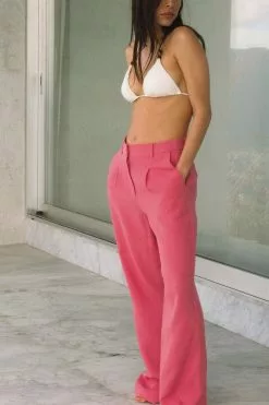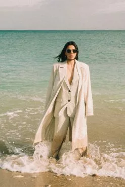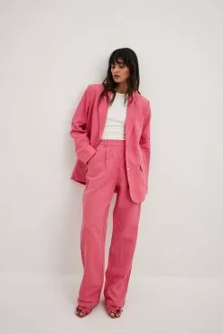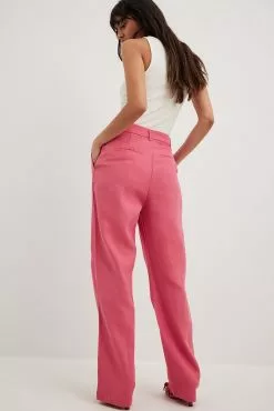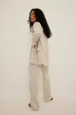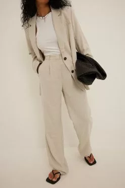 These suit pants feature a high waist with belt loops and a zipper, hook and button closure. They have front pockets and back mock pockets. These suit pants feature straight legs and a material with a linen blend. Inseam length in size 36: 81 cm / 31.88 in.