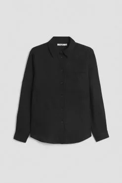 This shirt features a classic collar. It has long sleeves with a single button cuff and a chest pocket.