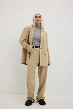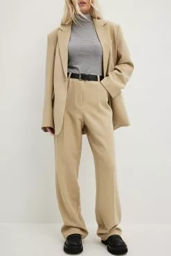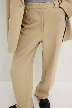 These pants feature a tailored fit. They have a straight leg and a high waist fit. These pants feature a zipper, hook and button closure, side pockets and back mock pockets.